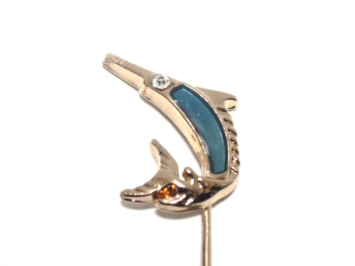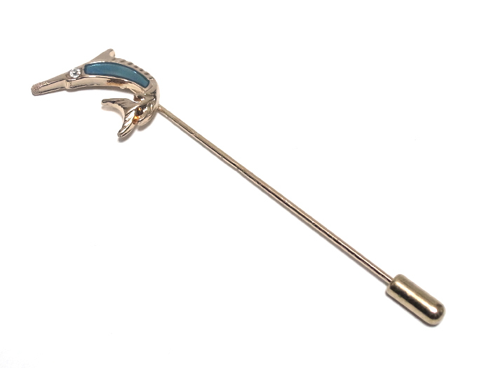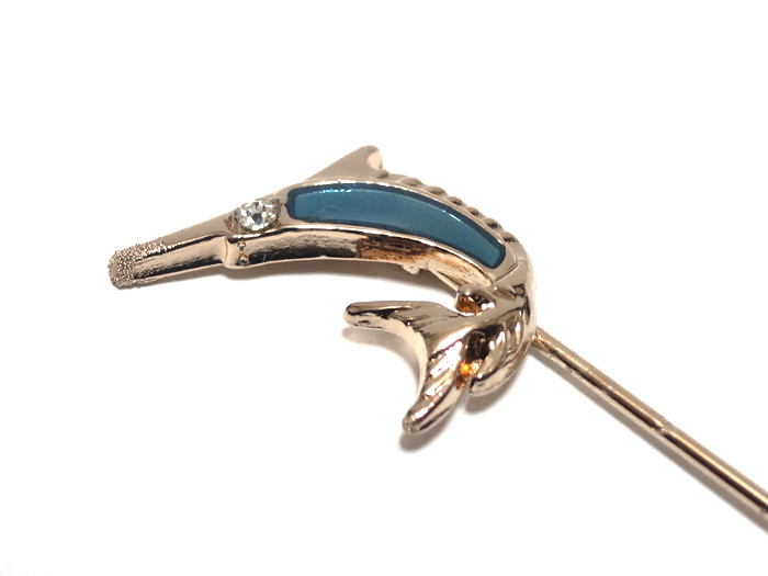 【ラペルピン★スティック】カジキ★ソード・フィッシュ★魚★ラインストーン★キラキラ★ゴールド★スーツ★アクセサリー/pin-0150