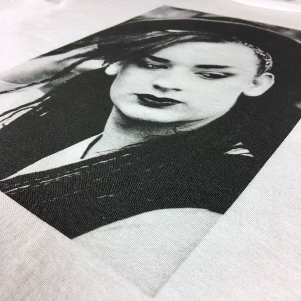 80年代にバンド、カルチャークラブのボーカルとしてデュランデュランやジャパンらと共にニューウェーブ、ニューロマンティクスというジャンルで、ロック界に新しいムーブメントを巻き起こしたボーイジョージのフォトデザインです。