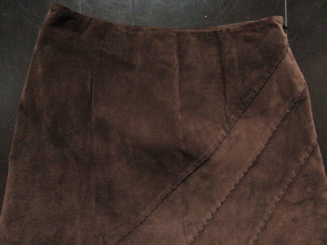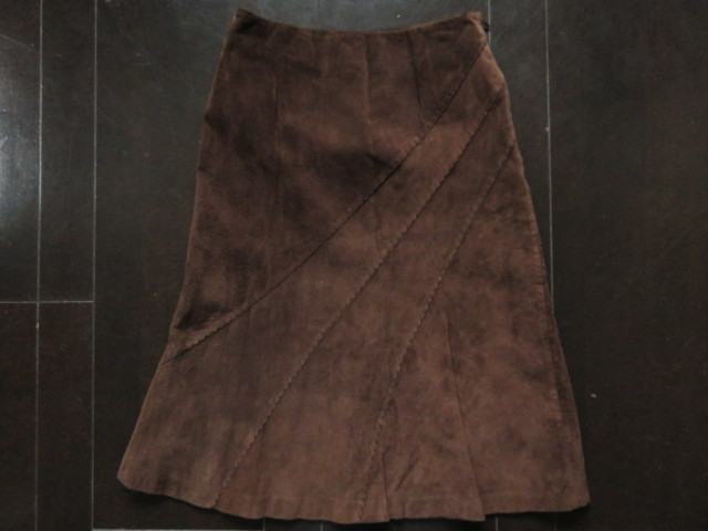 ■綺麗な上質美品 豚革スエードロングスカート ブラウン【38】9号M b573