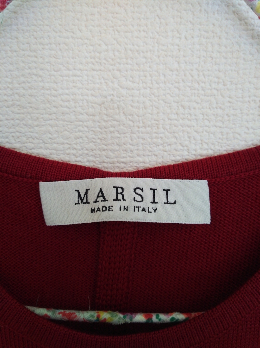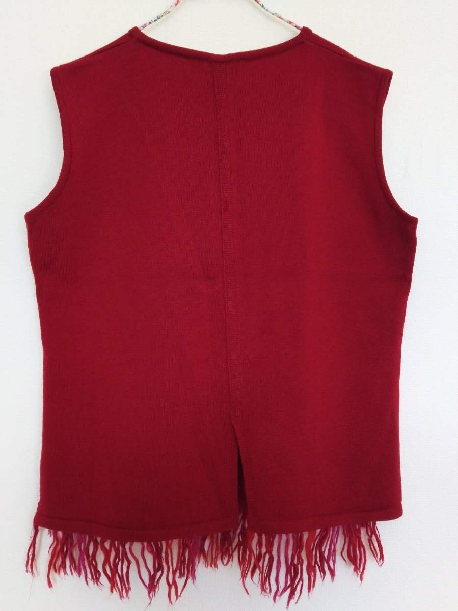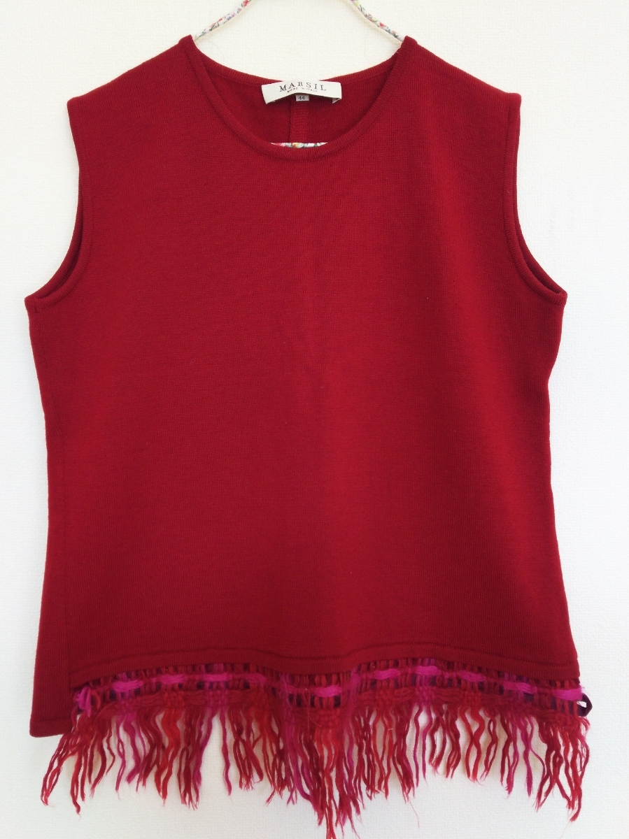 s653 イタリア製 上質 ■MARSIL■ サイズM~Lくらい 赤系 ノースリーブ ニット 身幅45.5 着丈51 肩幅37