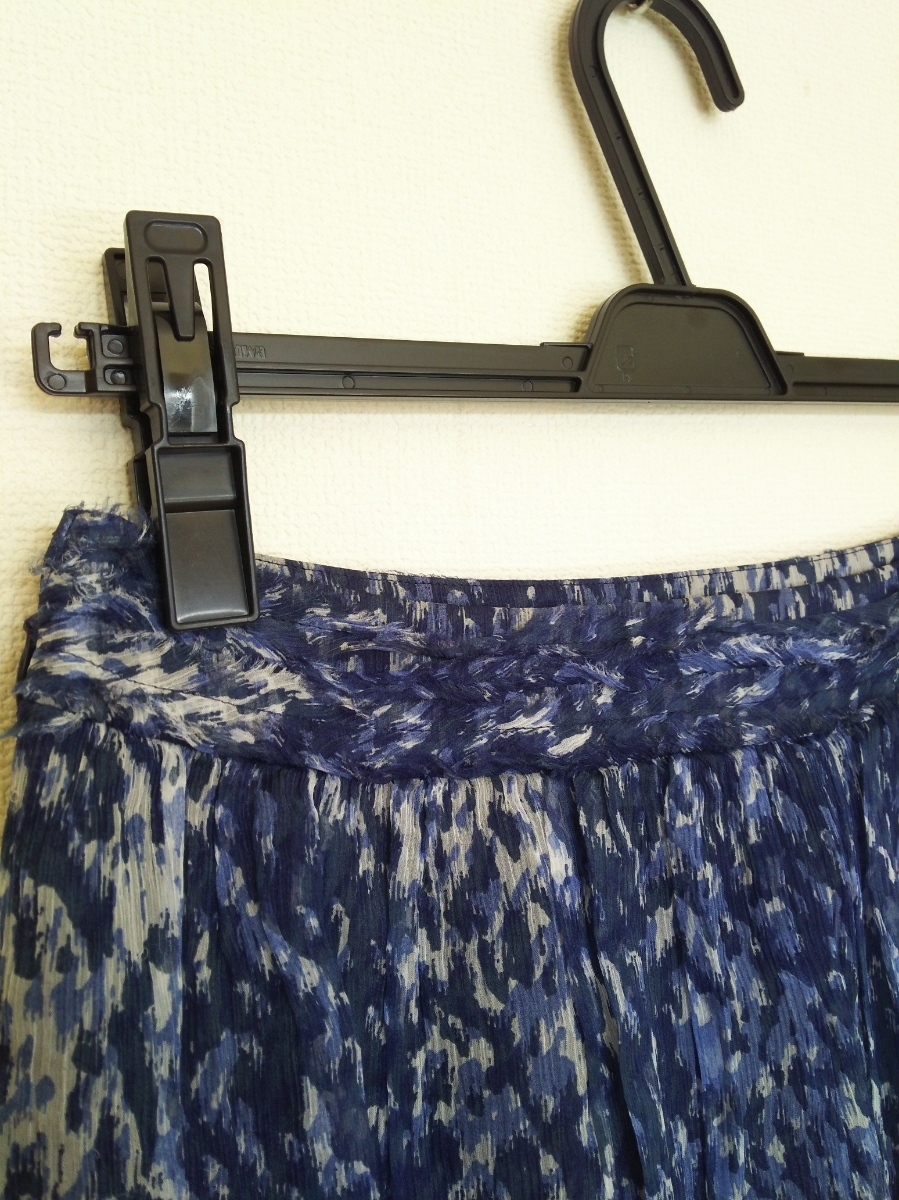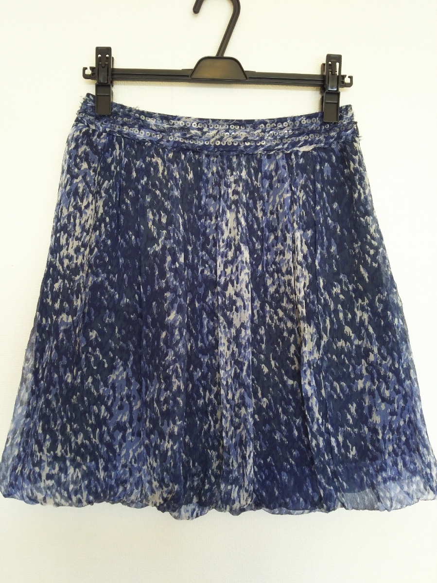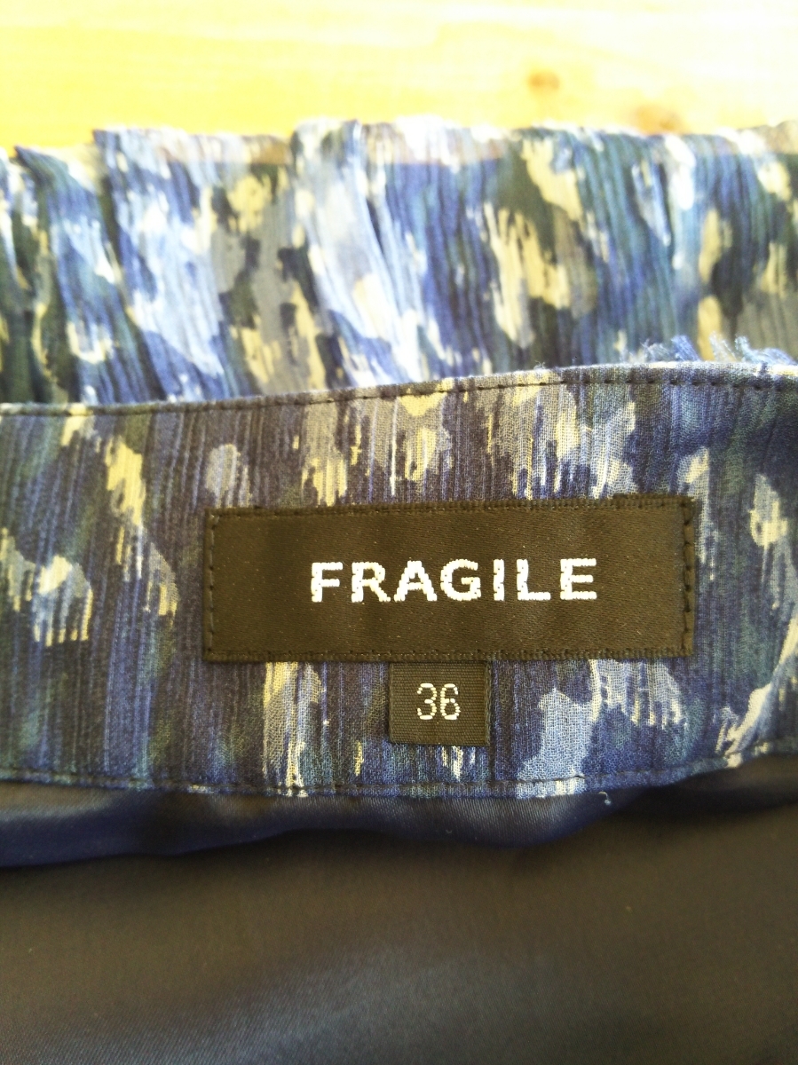 s674 都美人 春支度 ■FRAGILE■ フラジール 三陽商会 上質絹 シルク100% サイズ36 S~M 平置W35 着丈48 裏地付シースルー スカート 青系