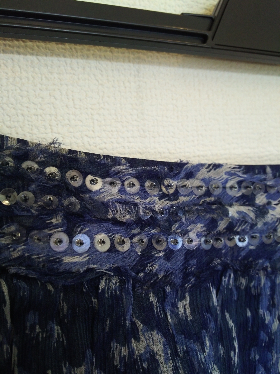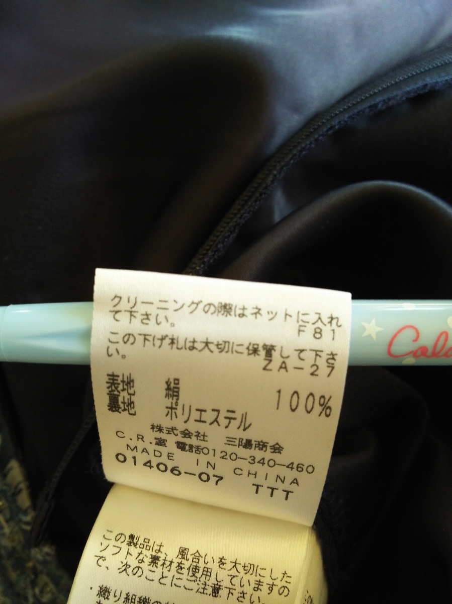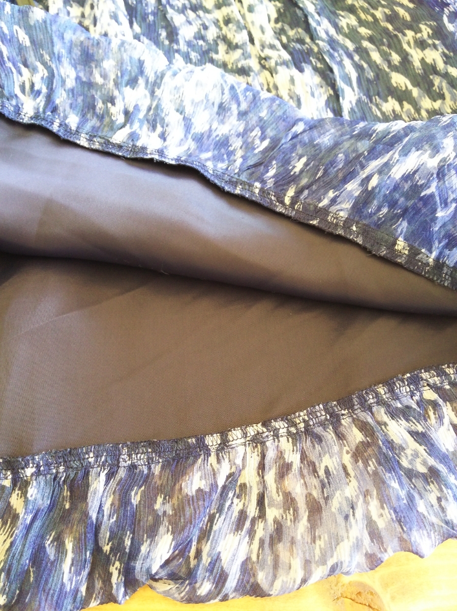 s674 都美人 春支度 ■FRAGILE■ フラジール 三陽商会 上質絹 シルク100% サイズ36 S~M 平置W35 着丈48 裏地付シースルー スカート 青系
