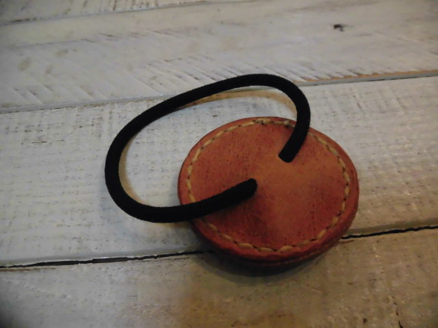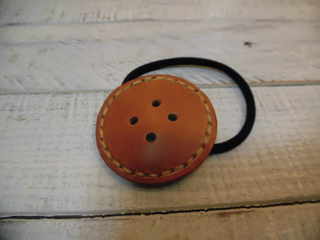 革でボタンモチーフのヘアゴム作成しました☆ 直径約5㎝でインパクトあります!! とっても可愛いですょ☆ | ||