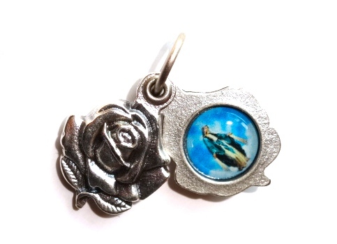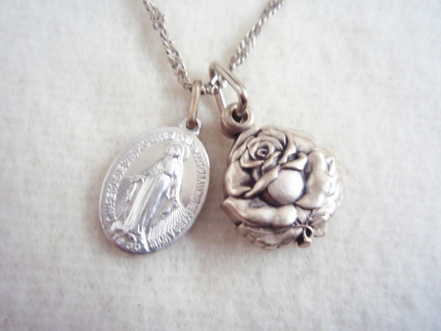 日本ではもちろん、今、フランス国内でもシャネルのデザイナー、カールラガーフェルドも付けている人気のメダイユです。パリの「奇跡のメダイ教会」の薔薇チャームスライド式です。中には、マリア様とメダイの絵が入っております。単独で身に付けても素敵ですが、他のデザインと重ね付けするとよりいいです。