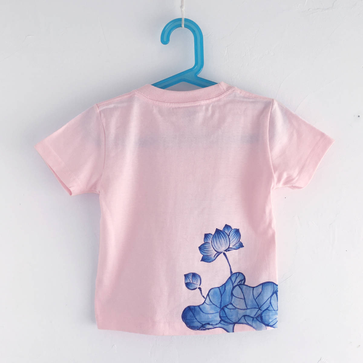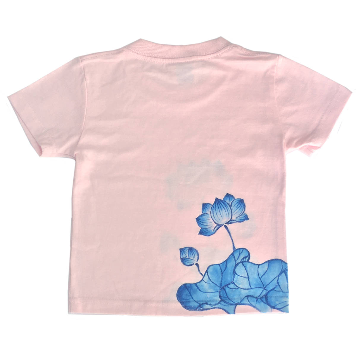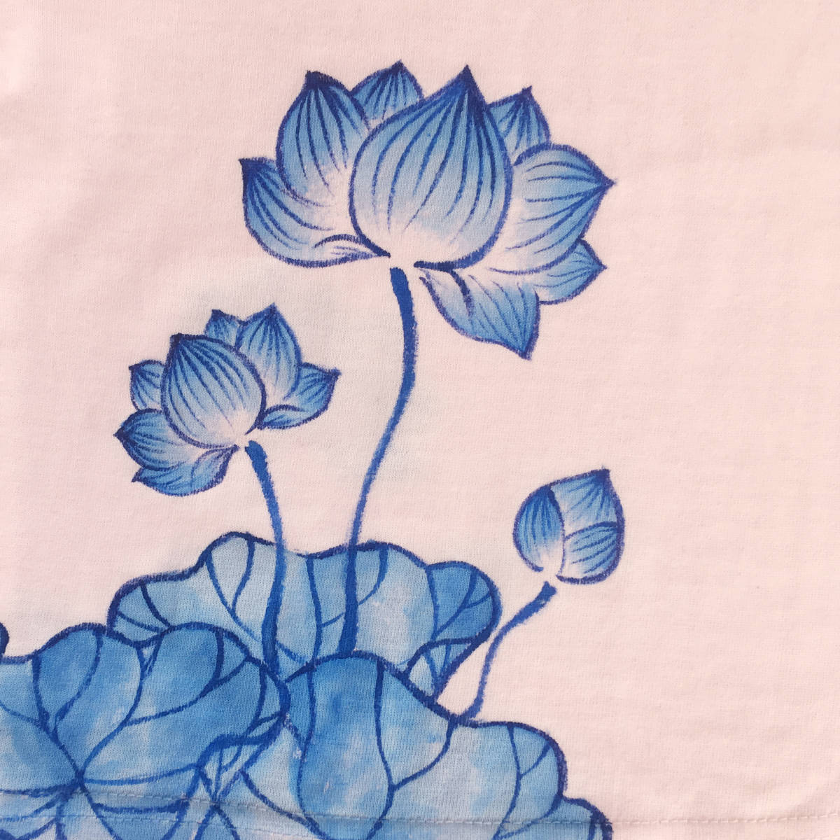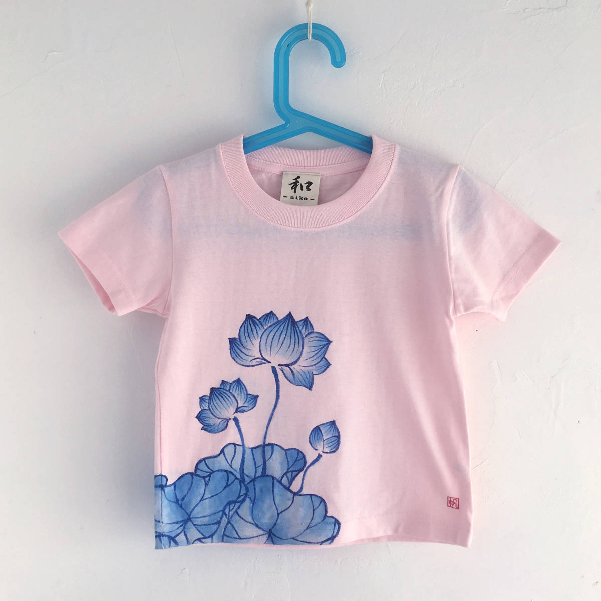 ハンドメイド 手描きTシャツ キッズ Tシャツ 蓮柄Tシャツ 手描きで描いた蓮の花柄Tシャツ | |||