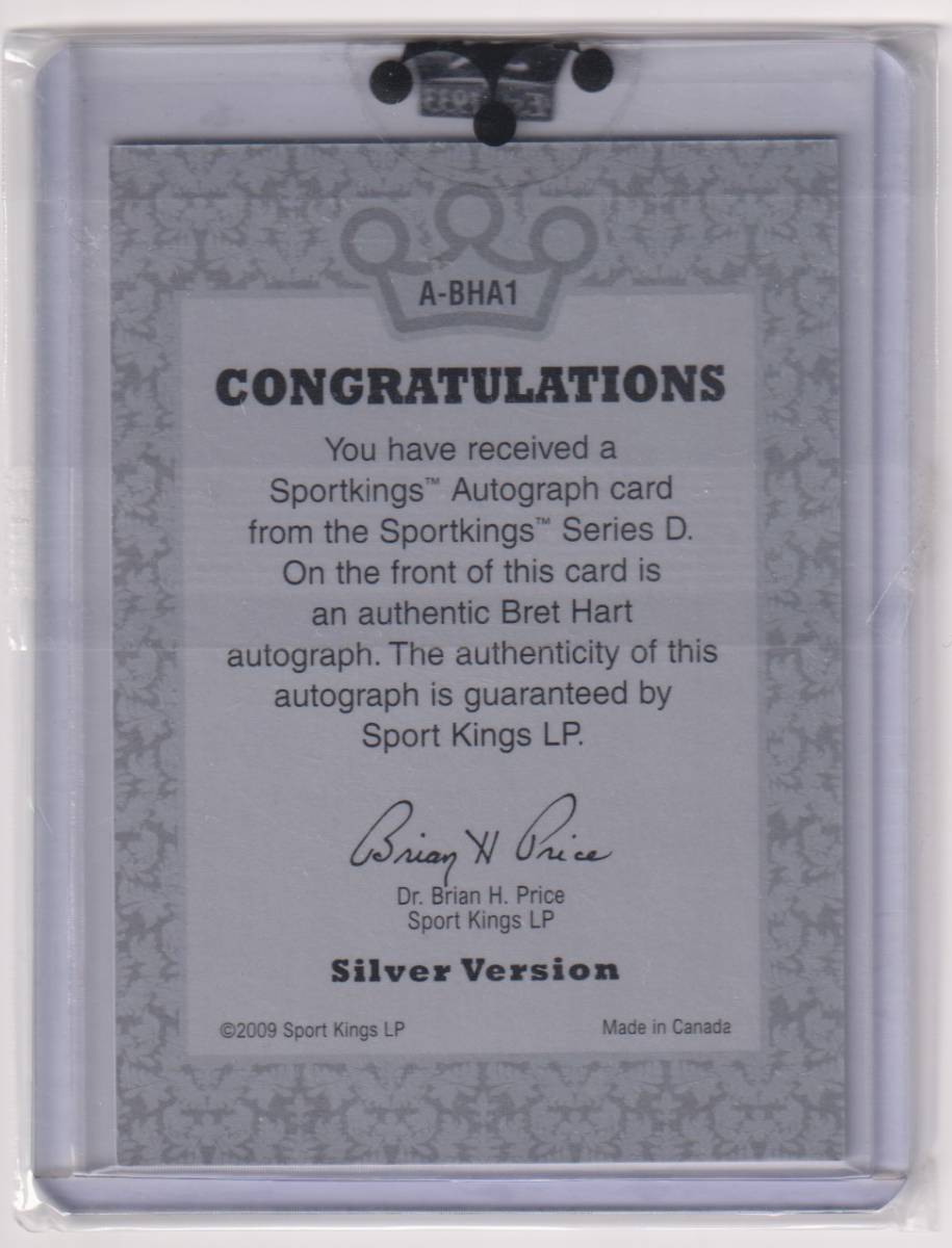 WWE Bret HitMan Hart AUTO 2009 Sport Kings ON CARD AUTOGRAPH ブレット “ ヒットマン ” ハート 直書き 直筆 サイン オート プロレス
