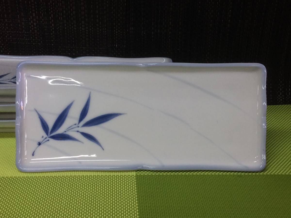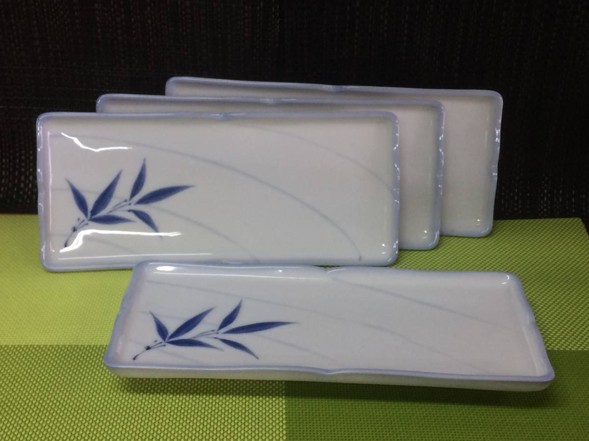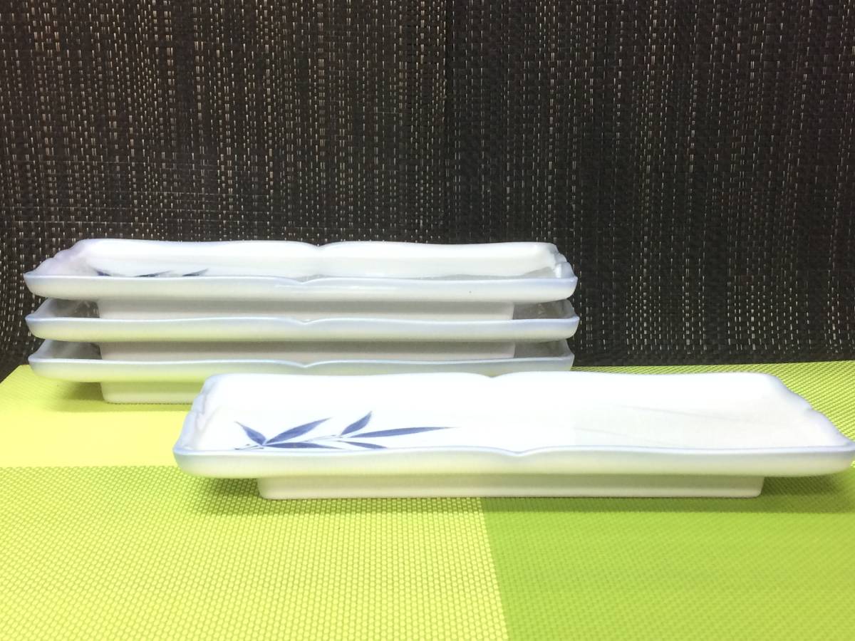4枚1組 2組8枚まで可【即決】新品未使用 笹絵 染付 渕高 刺身皿 焼物皿 長角皿