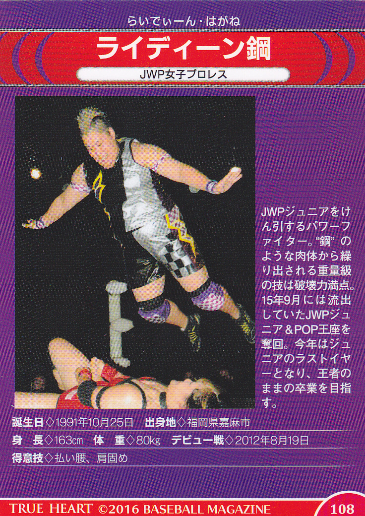 BBM2016 TRUE HEART 108 ライディーン鋼 福岡県嘉麻市 女子プロレス