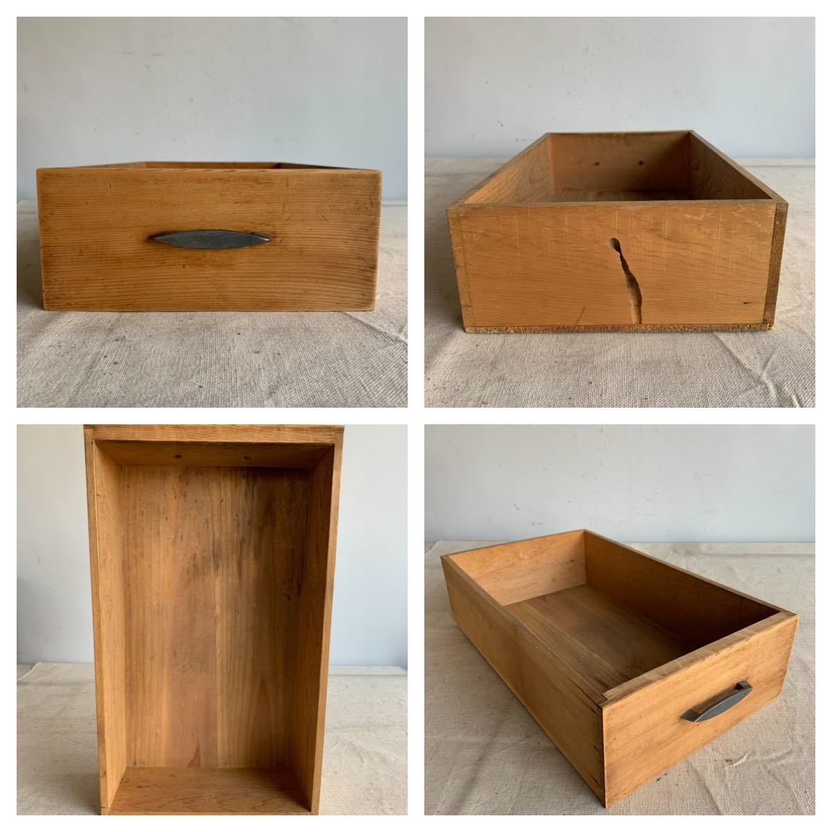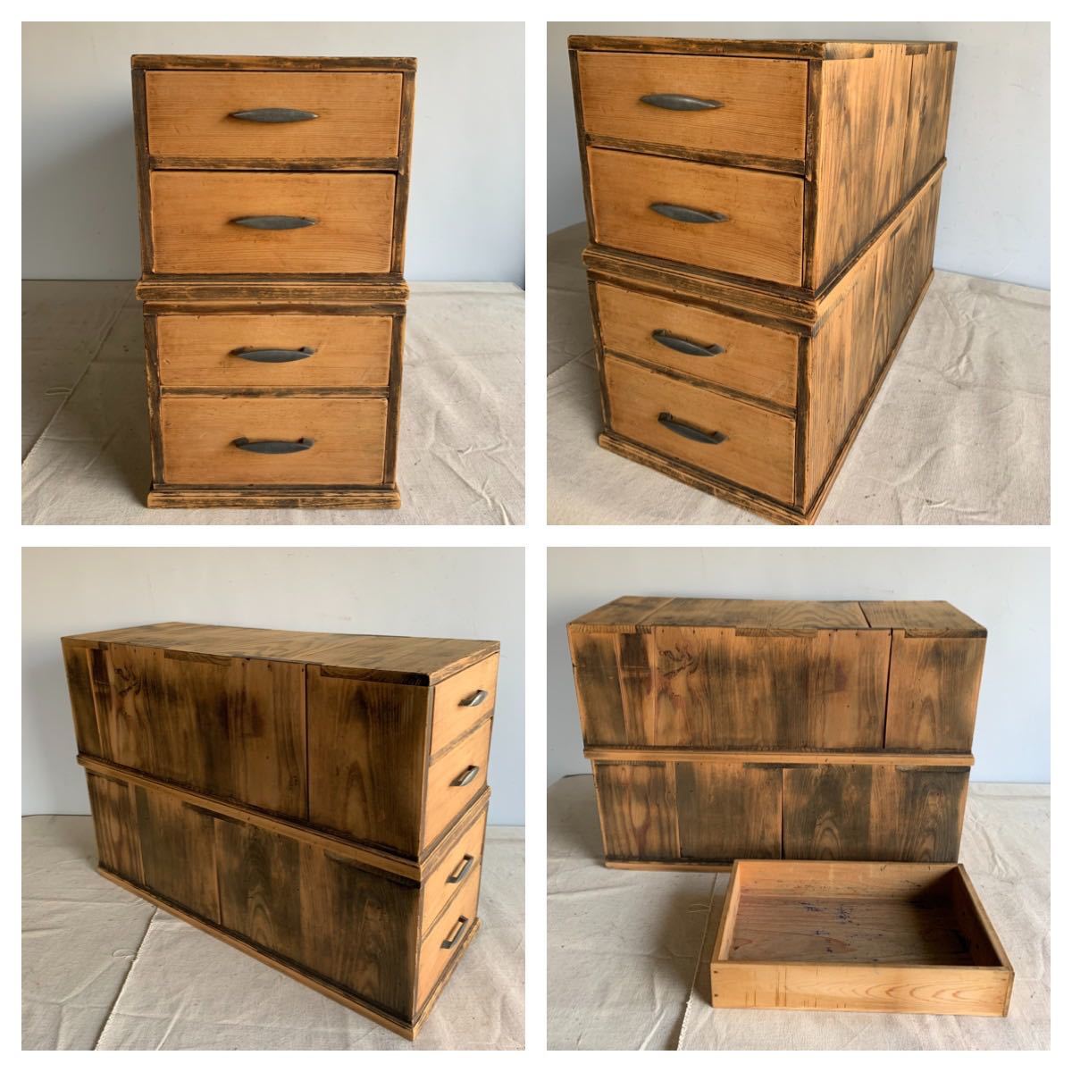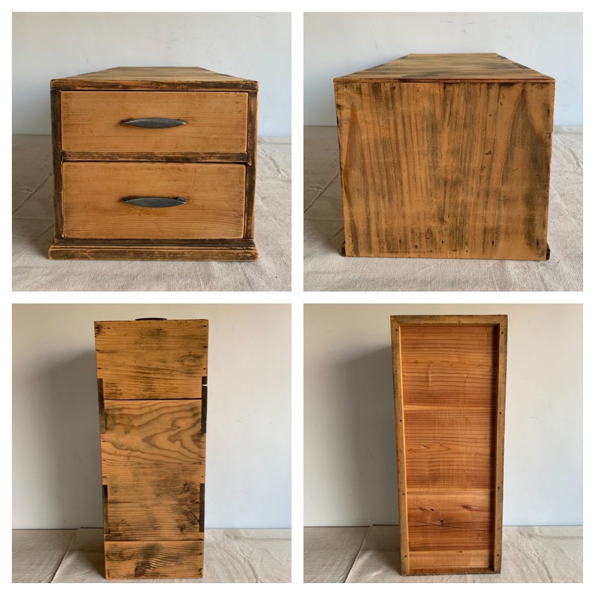 A4サイズが入る全て無垢材が使われている木製の2杯引き出し2個セットです。奥行きのある作りで上に板などを渡せば、ローテーブルが作れます。小物や書類、文具などを収納する小家具としてお部屋のインテリアやお店の什器として使って頂くと素敵だと思います。引き出しはスムーズです。2枚目の画像にある通り、引き出しの奥行は外側のケースより短いです。