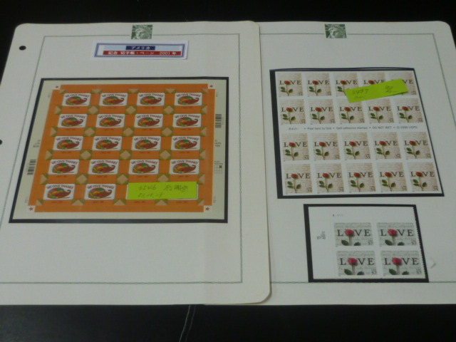裏面を写しておりませんが未使用NHです。#J又はSC#とある場合、JはJPSアメリカカタログ番号 もしくは SC#はスコットカタログ番号になります。記念切手帳(付箋に構成枚数記載有)又は切手帳ペーンです。普通切手サイズの20面構成シート、シール式切手も含む場合もあります。