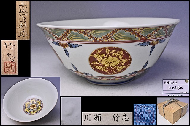 物故作家 川瀬竹志 氏の 作品です。 丁寧で 見事な 絵付 の 逸品です。 展示会購入品と思われ 値札が入っていました。