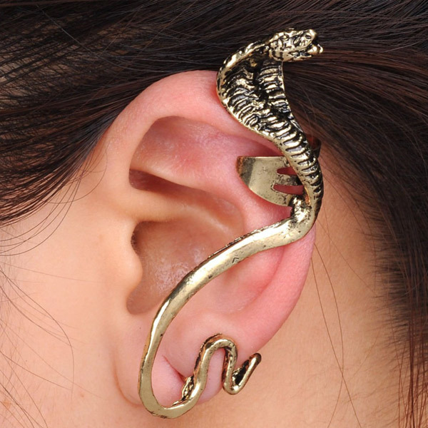 蛇が耳に絡みつ不気味だけどかっこいいキングコブライヤーラップピアス。