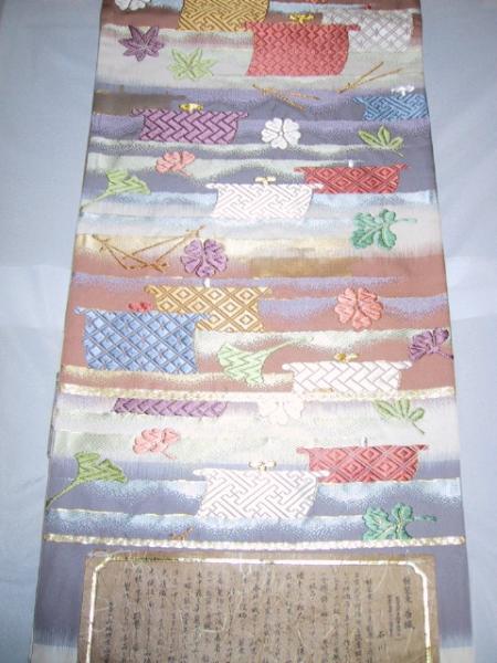 唐織本物志向の方に、一度は手のとっていただきたい一品です。この機屋は山城機業店、西陣証紙番号216番です。この白白茶+茶肌+薄紫灰地に、山城ならではの色使いが生えます。絹100%金属糸等使用 。新品み仕立て。唐織ですのであまり細かいことにこだわられる方には、適しません。