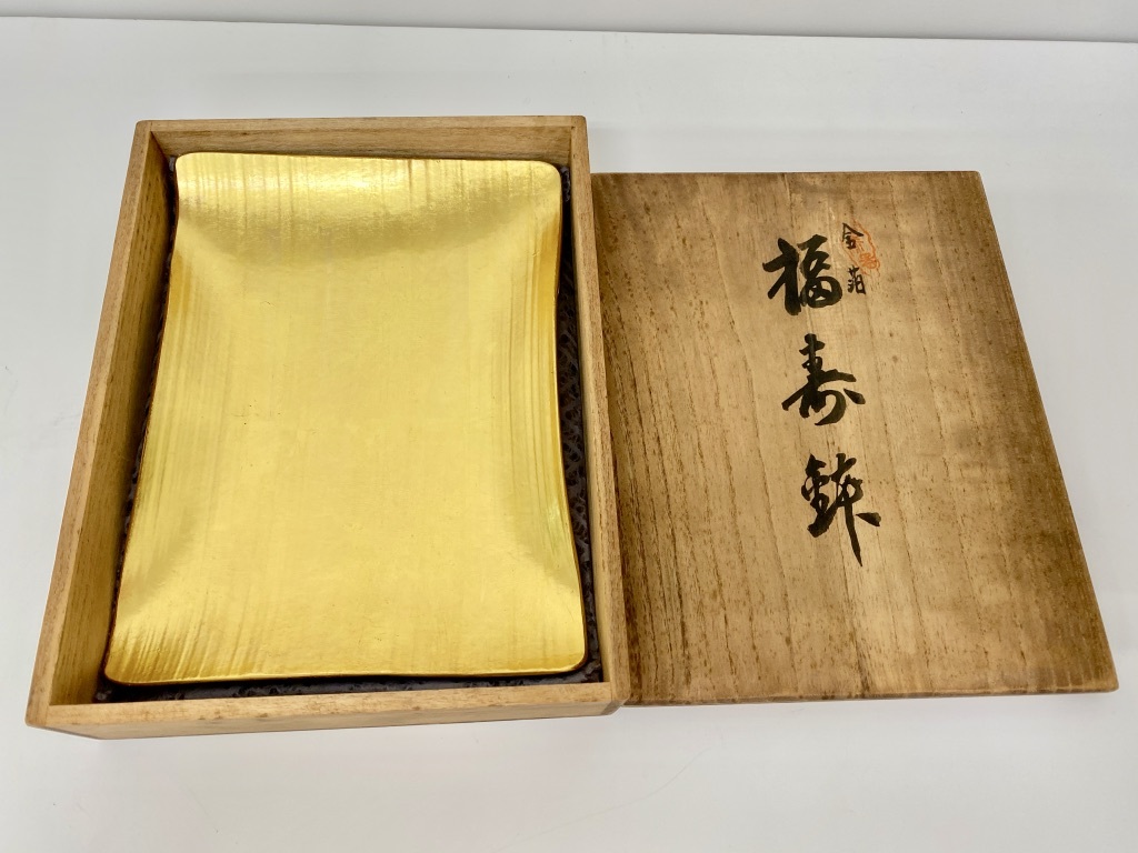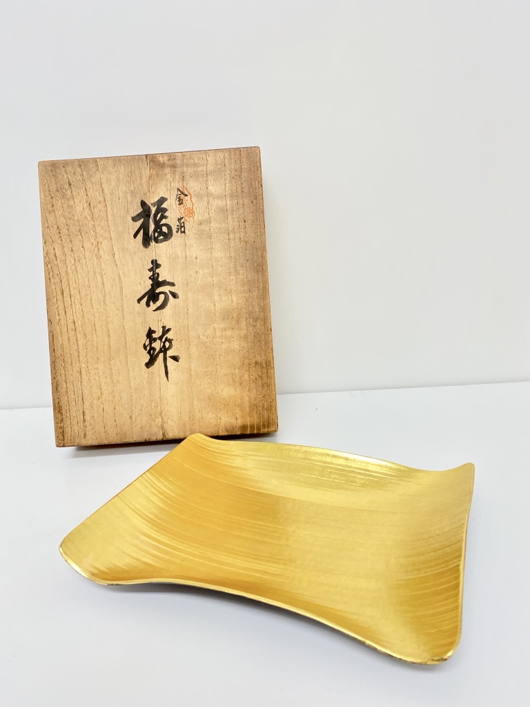 未使用品・激レア!●福寿鉢 菓子盛り 菓子器 盛り鉢 金箔 木箱あり 銘あり 管理1912 N-9
