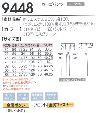 新品☆SOWA カーゴパンツ 作業着 ワーキング 70~130 (9448)
