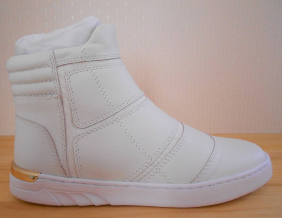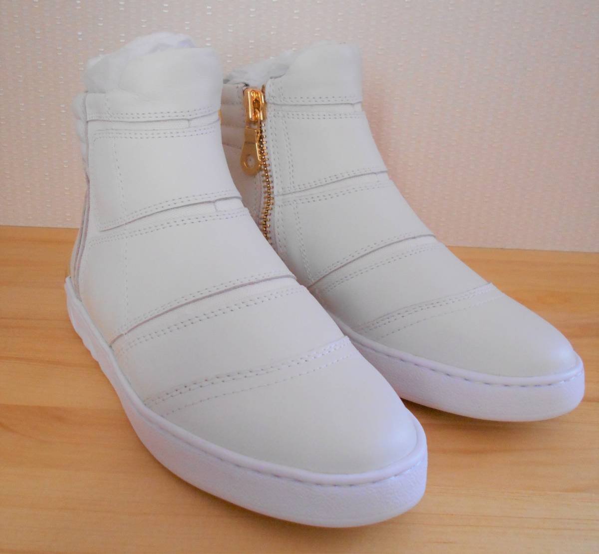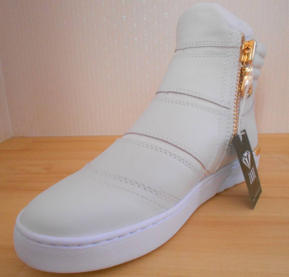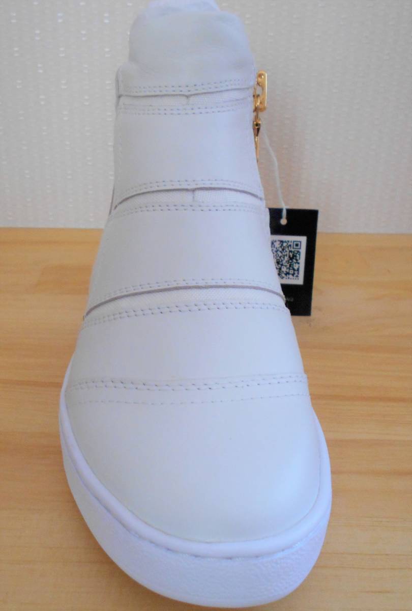 モード感あふれるデザインとゴールドのジッパーが特徴の一足です。