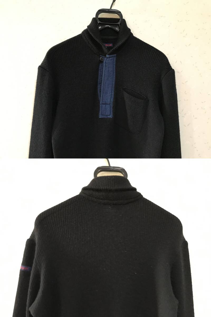 ※ ハリウッドランチマーケット ブルーブルー BLUE/BLUE 聖林公司 HRM ショールネック 胸ポケットウールニット カットソー 2/M   BJAI.AB
