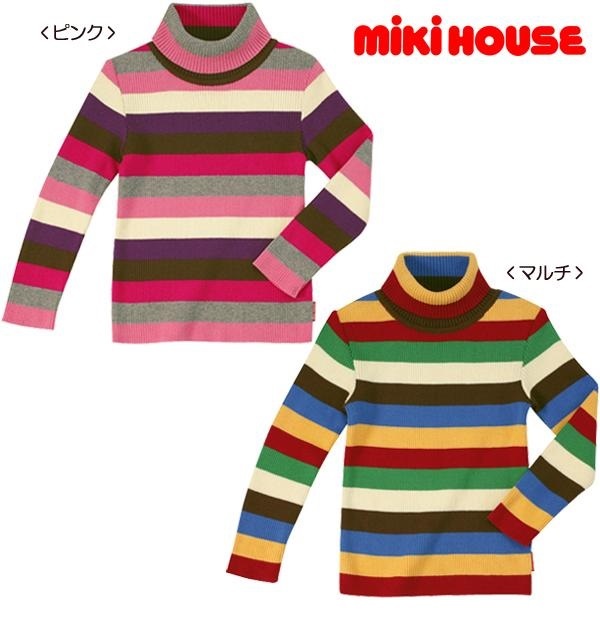 ☆ミキハウス☆マルチボーダー 綿ニットタートルセーター☆