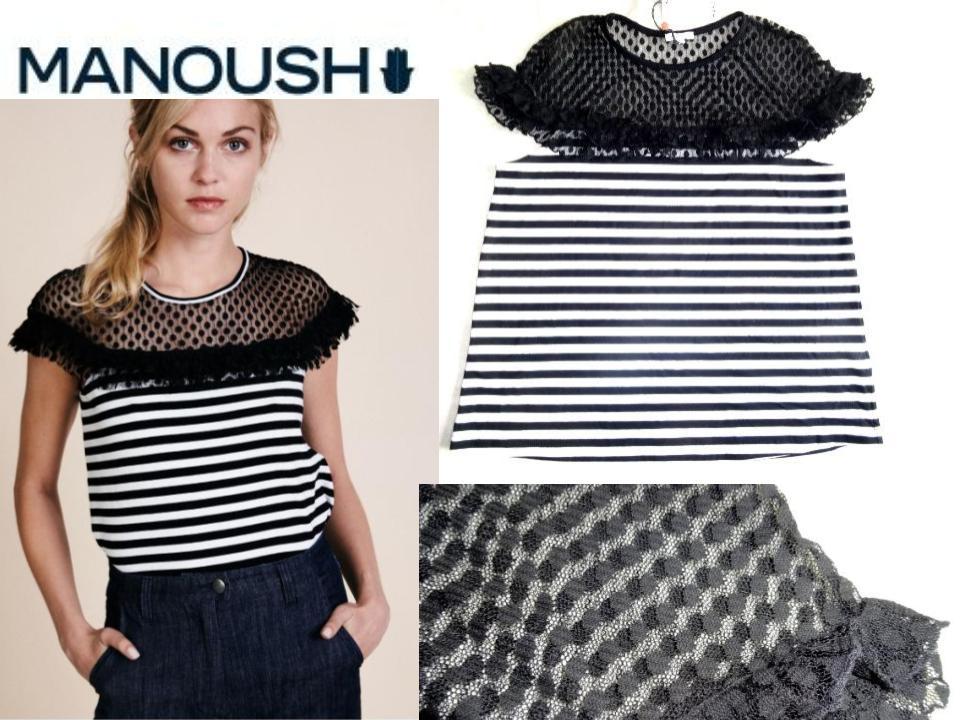 MANOUSHのTシャツ トップスです。パリスヒルトン、フランスでもバネッサパラディー、有名シンガー、日本では、梨花、ひなの、平子さん愛用で知られていますフランスブランドMANOUSHです。