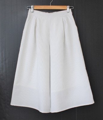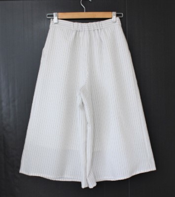 ★ワールドの INDEX インデックス のオフホワイト×グレーのストライプ柄のウエスト後ゴムのポケット付ガウチョ風スカートパンツになります。NO.Q’‐76