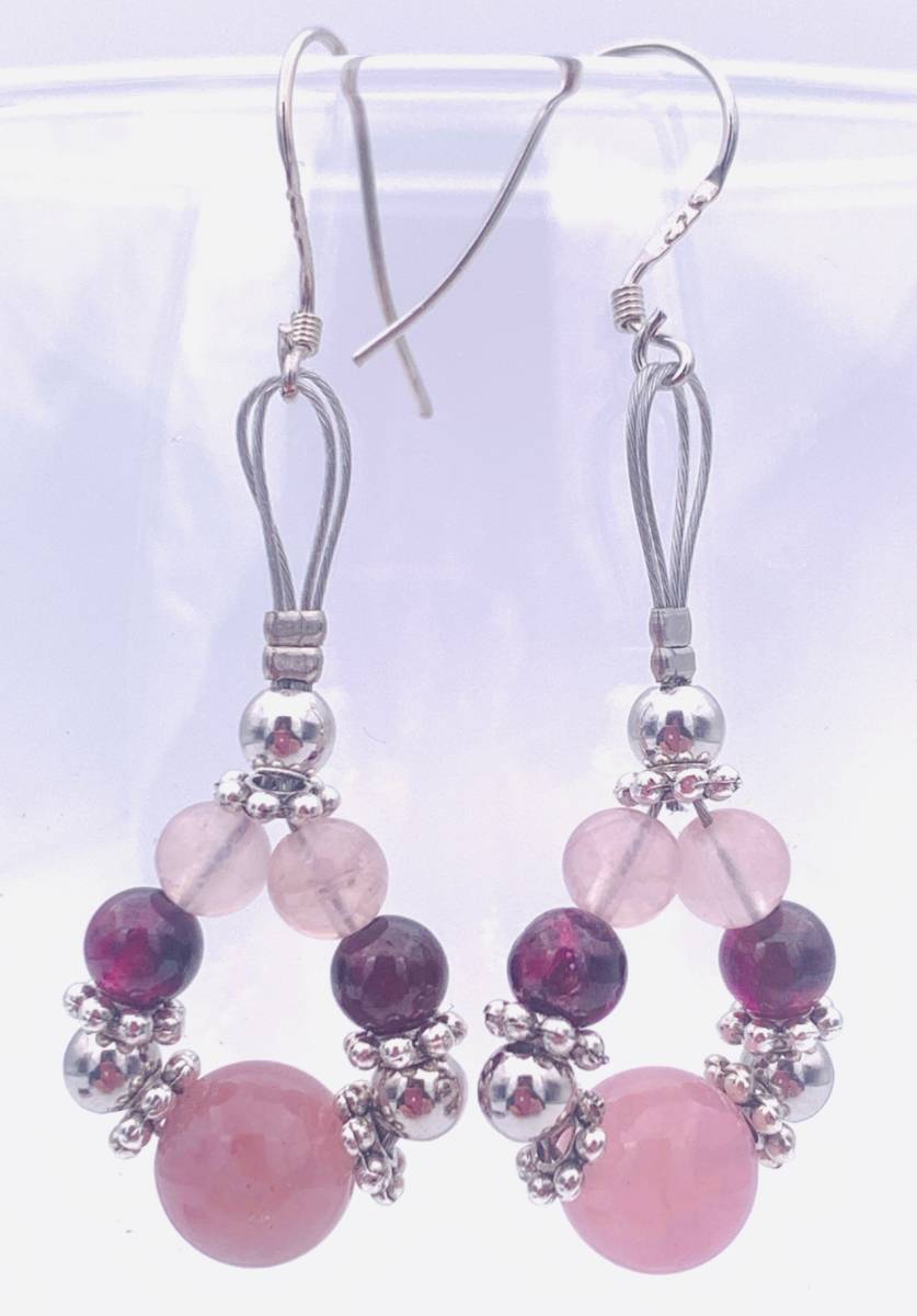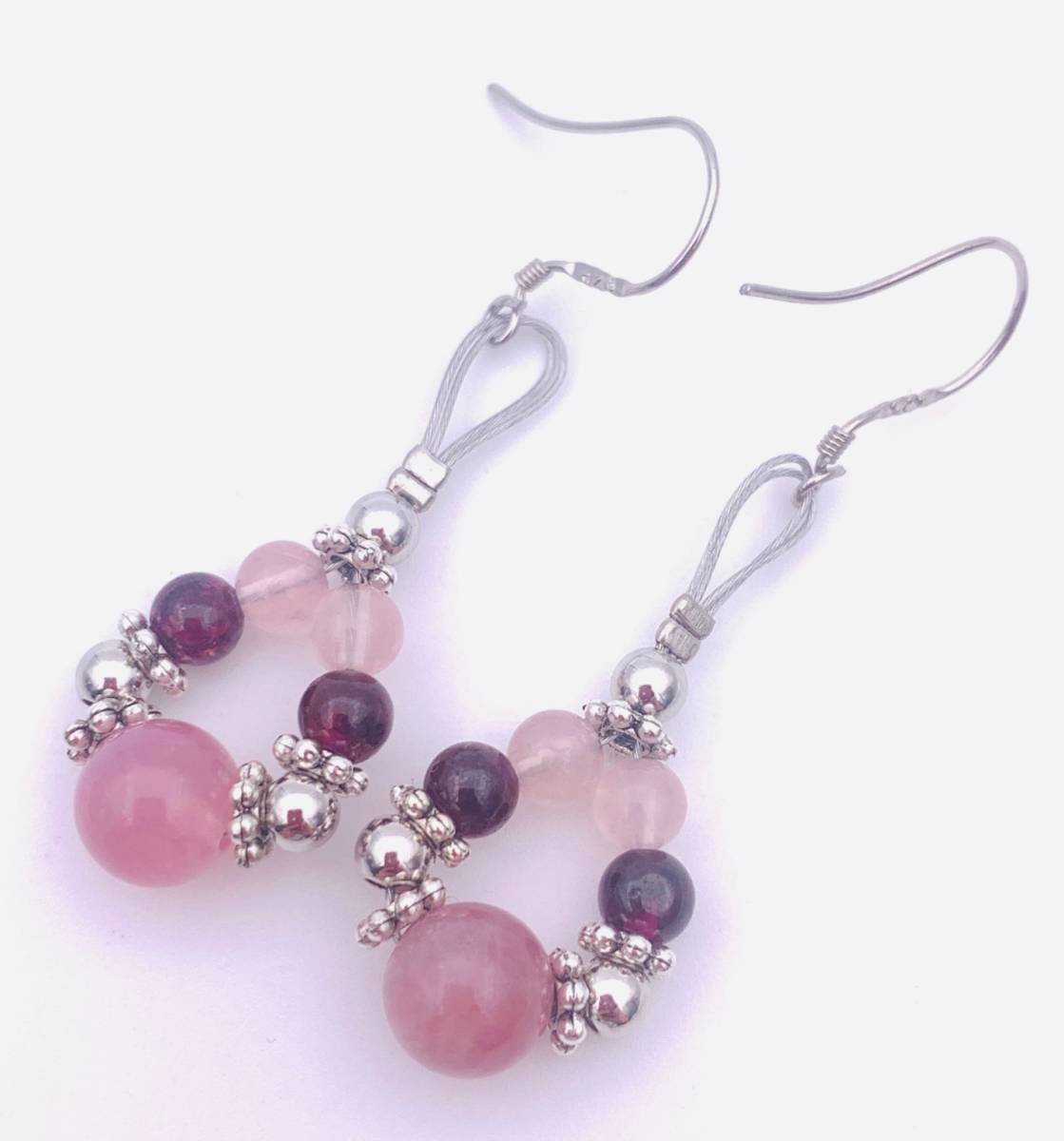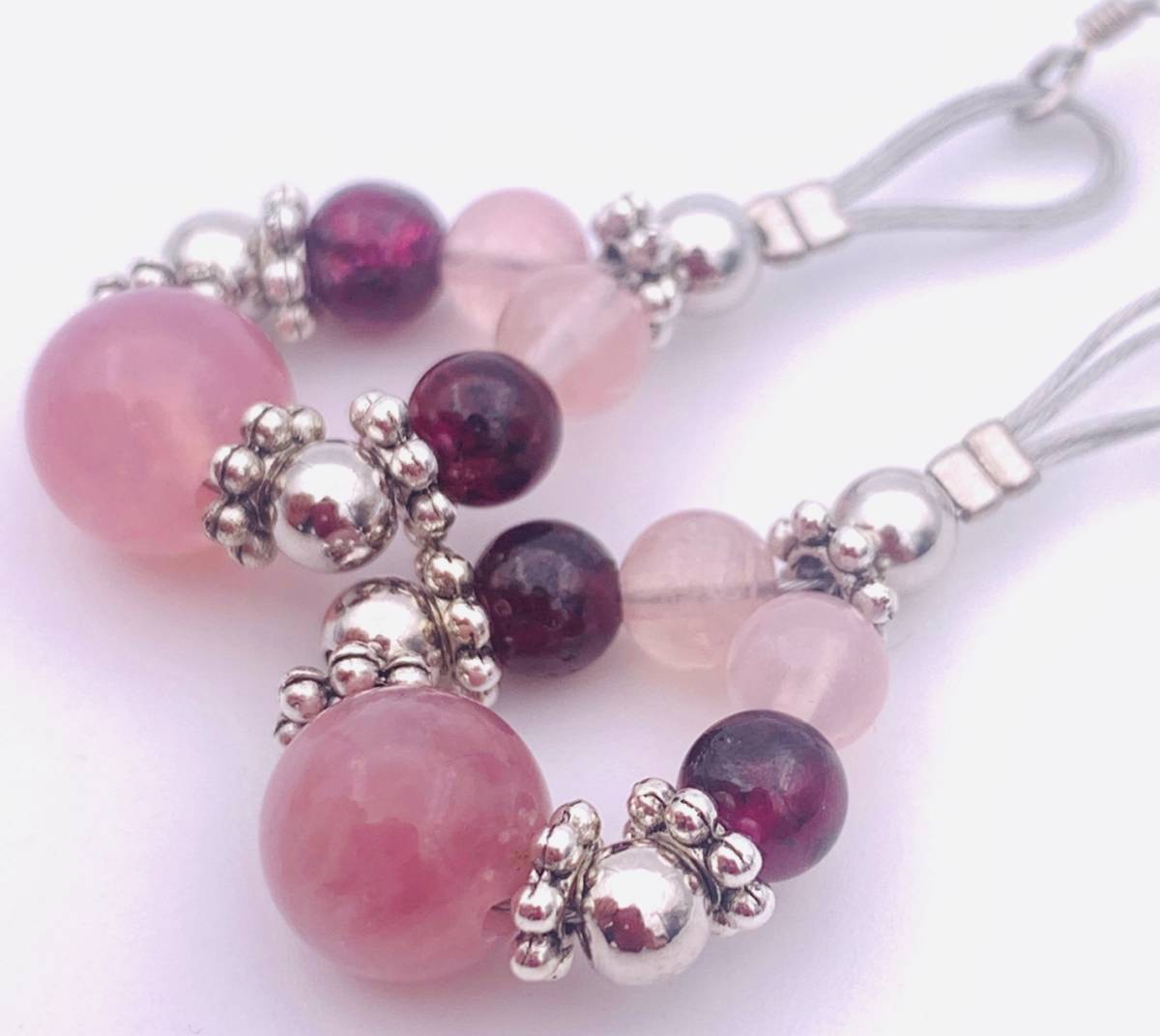 手作り!オリジナル★天然石ガーネット&ディープローズクォーツのピアス
