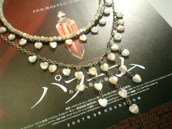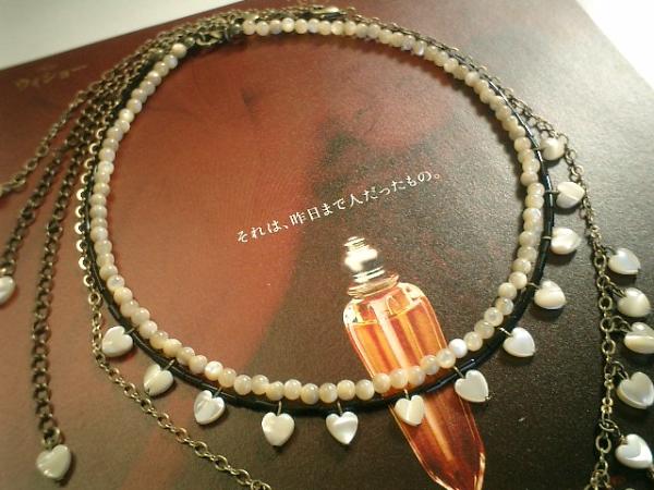 シック&シック!大人のMOPです♪3本セットです!柔らかでアンティークな雰囲気のシャンパンベージュのMOP でデザイン違いのネックレスを作りました♪いろいろな組み合わせで楽しんで頂けます♪シンプルな4ミリの丸玉は36センチ+アジャスター15センチで最長51センチ位です♪黒の竹ビーズには8ミリのハートのMOPをあわせました♪長さは36センチ+アジャスター13センチで最長49センチ位です♪華奢なチェーンには8ミリのハートのMPOをあせました♪動きのある可憐なネックレスです♪長さは全長59センチ位で調節自由です♪トップは1番長い所で5.5センチ位です♪それぞれ単品でも組み合わせても可愛いです♪お揃いのブレスレットも出品しています♪シンプルで飽きのこないいつまでも着けられるデザインを考えて作りました!ハンドメイドをご理解頂いてノークレーム、ノーリターンでお願いします