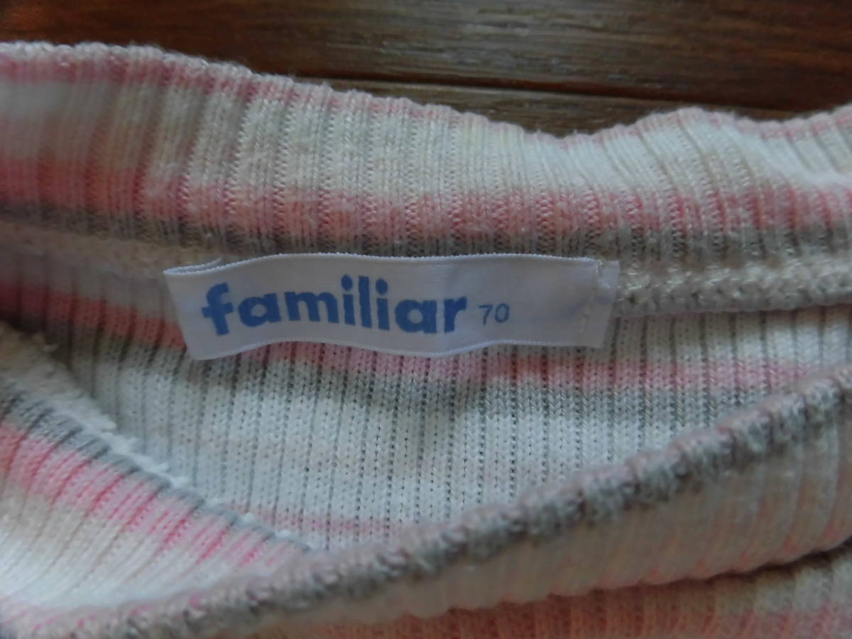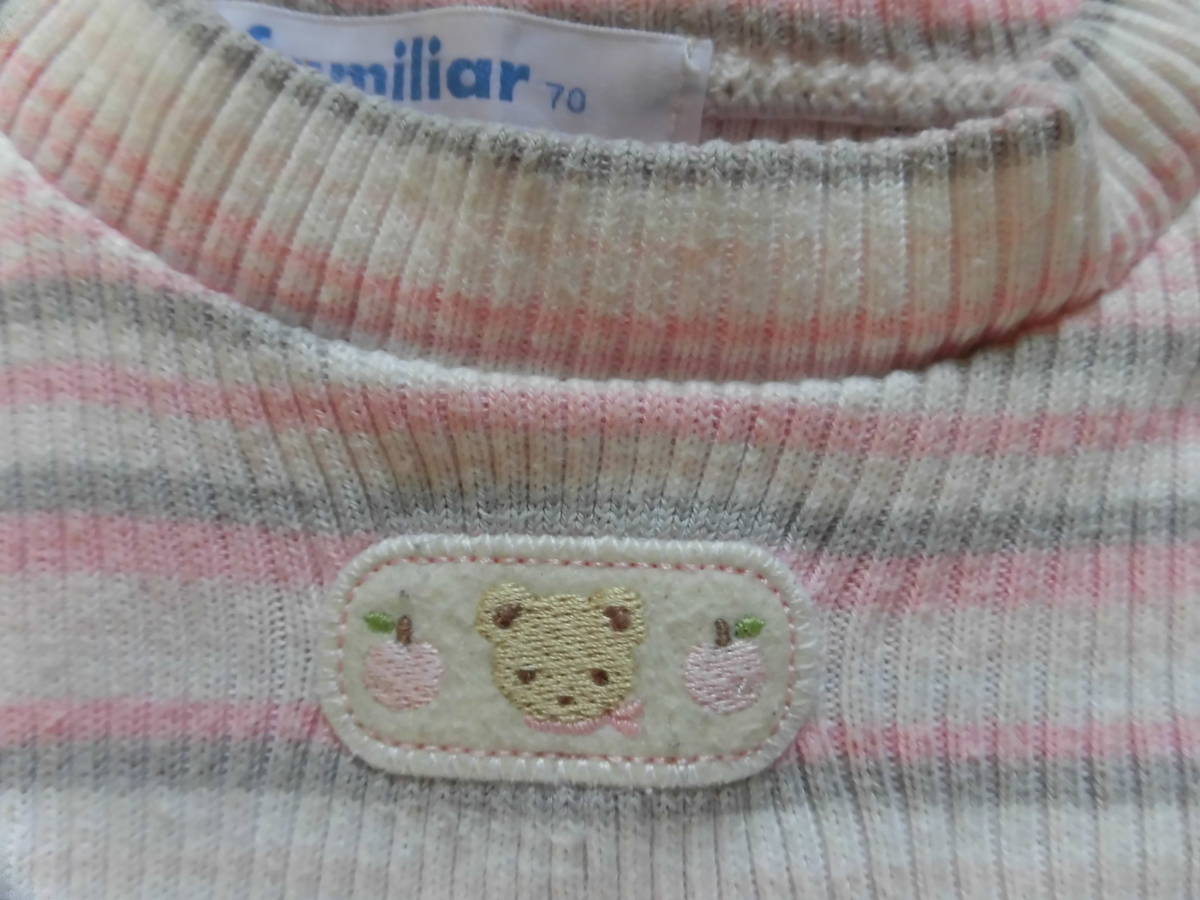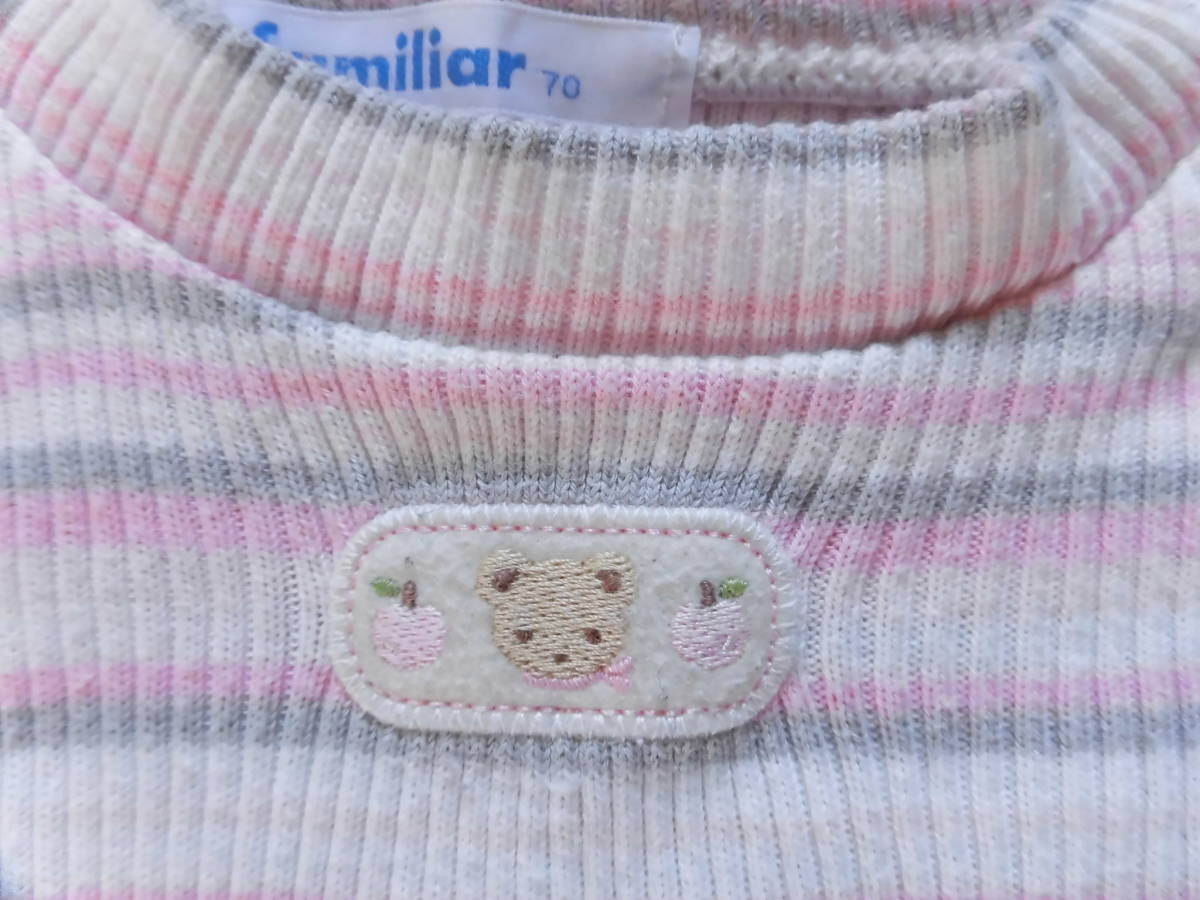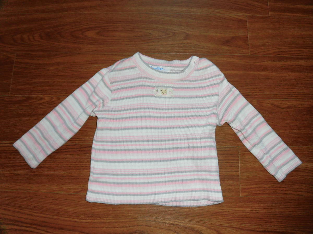 ファミリア★ファミちゃんピンクボーダー長袖カットソー★70