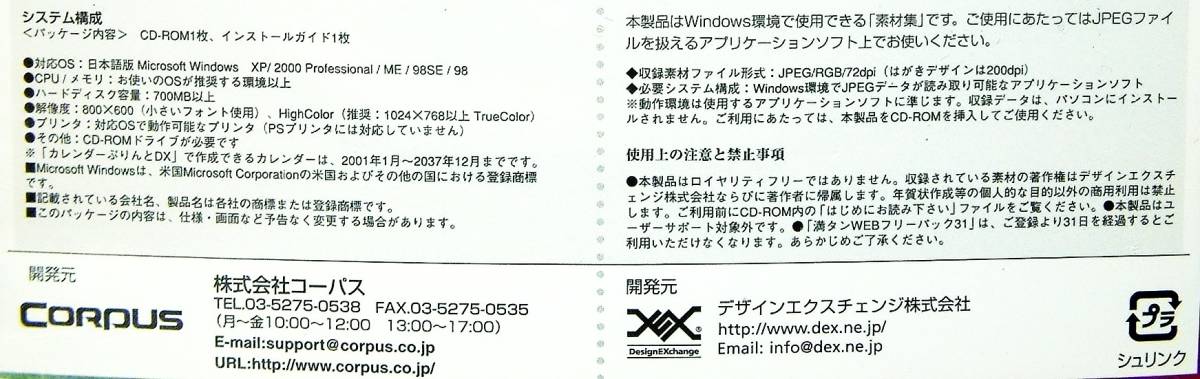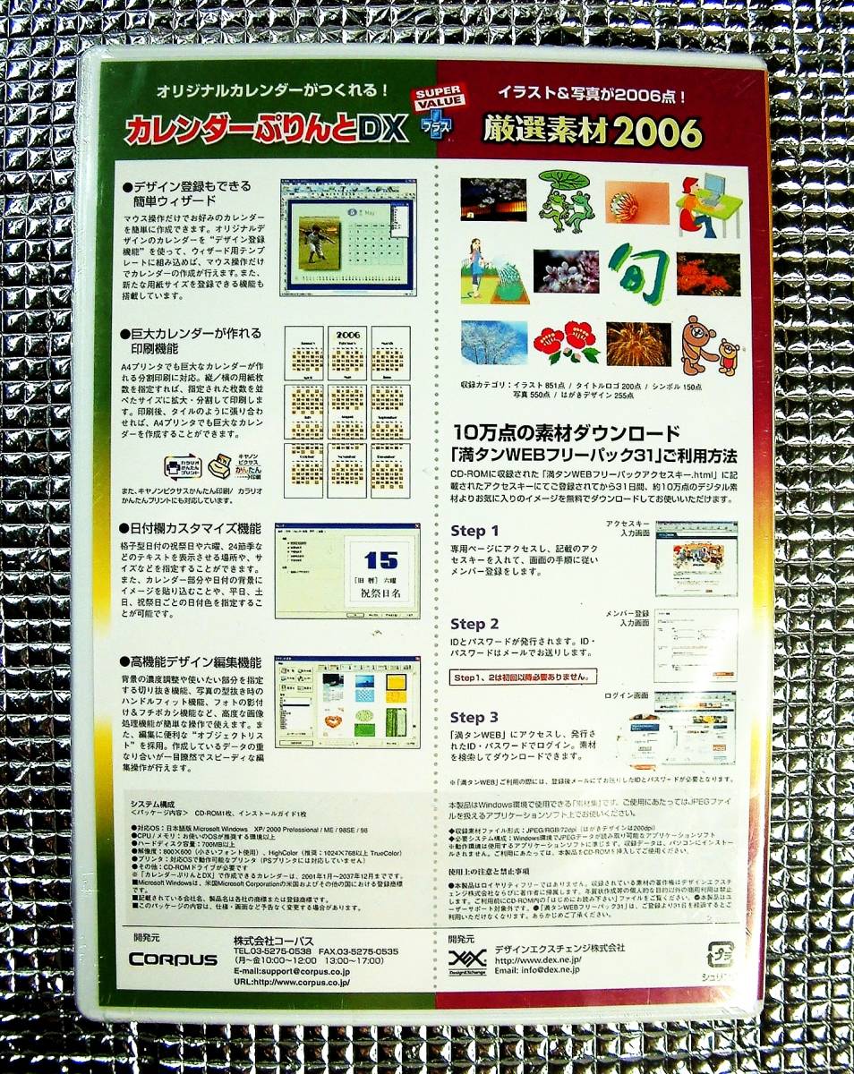 【4298】コーパス カレンダーぷりんとDX + 厳選素材2006 未開封 Windows用 デザインエクスチェンジ CORPUS カレンダー作成ソフト 分割印刷
