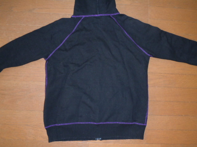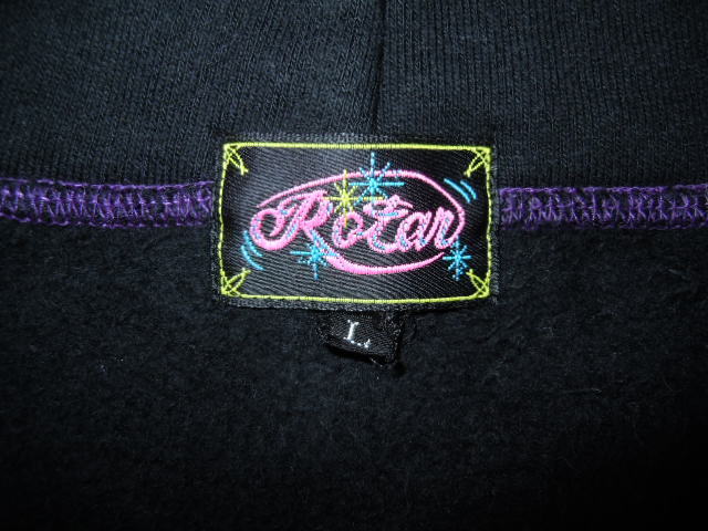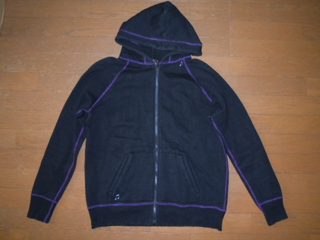 | ローターのパーカー 20年以上前の貴重な “最初期”作品になります。 黒ボディに紫のステッチ、水色の刺繍が映えます。 袖にRo,ト音記号の刺繍、フードの付け根、裾に音符刺繍が入ります。 裏起毛で温か サイズ L 状態良好 |