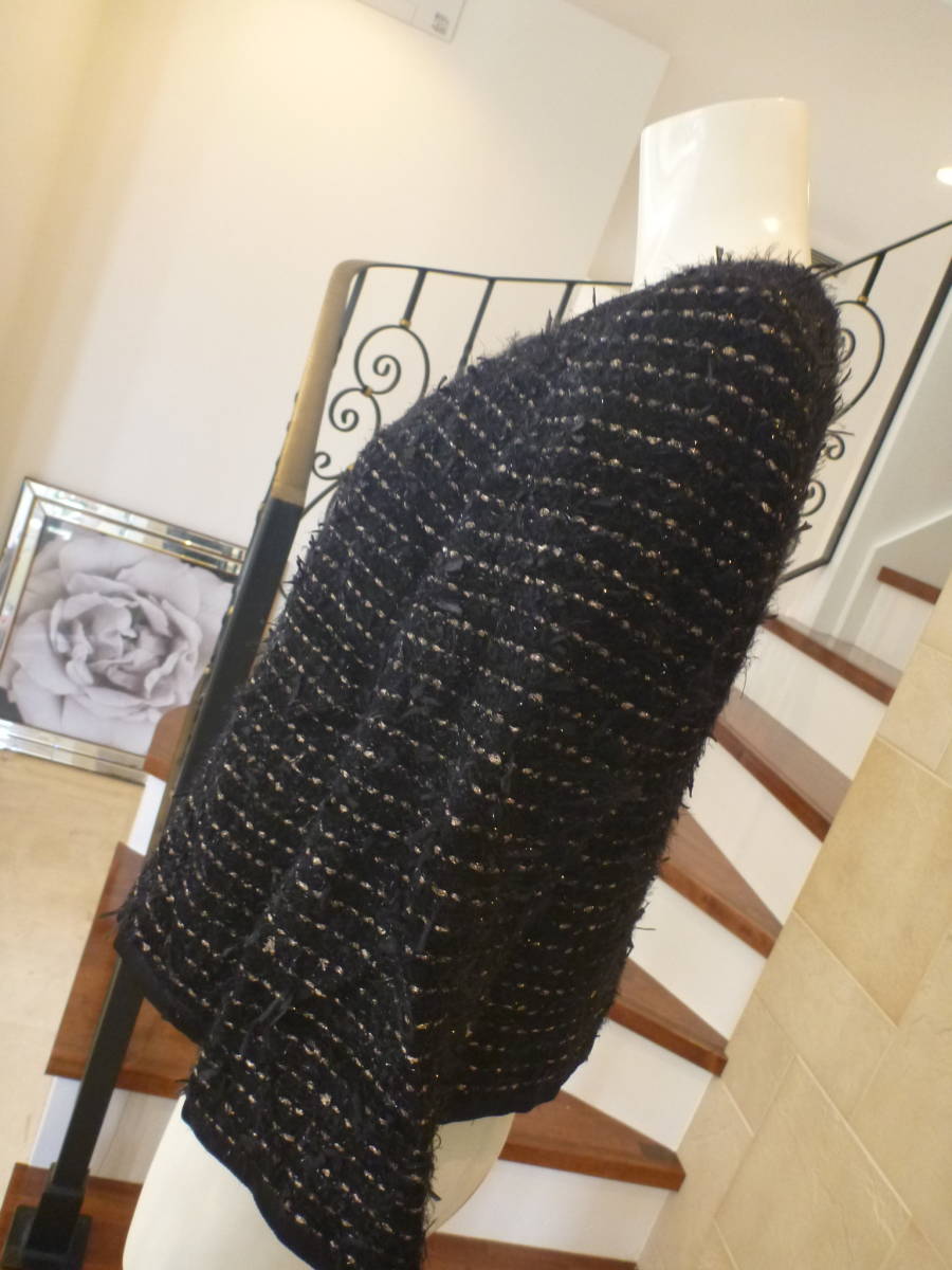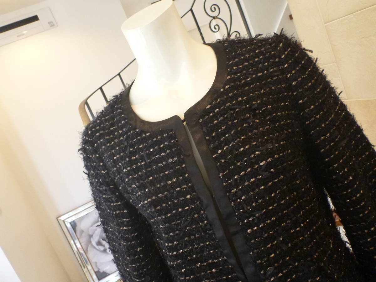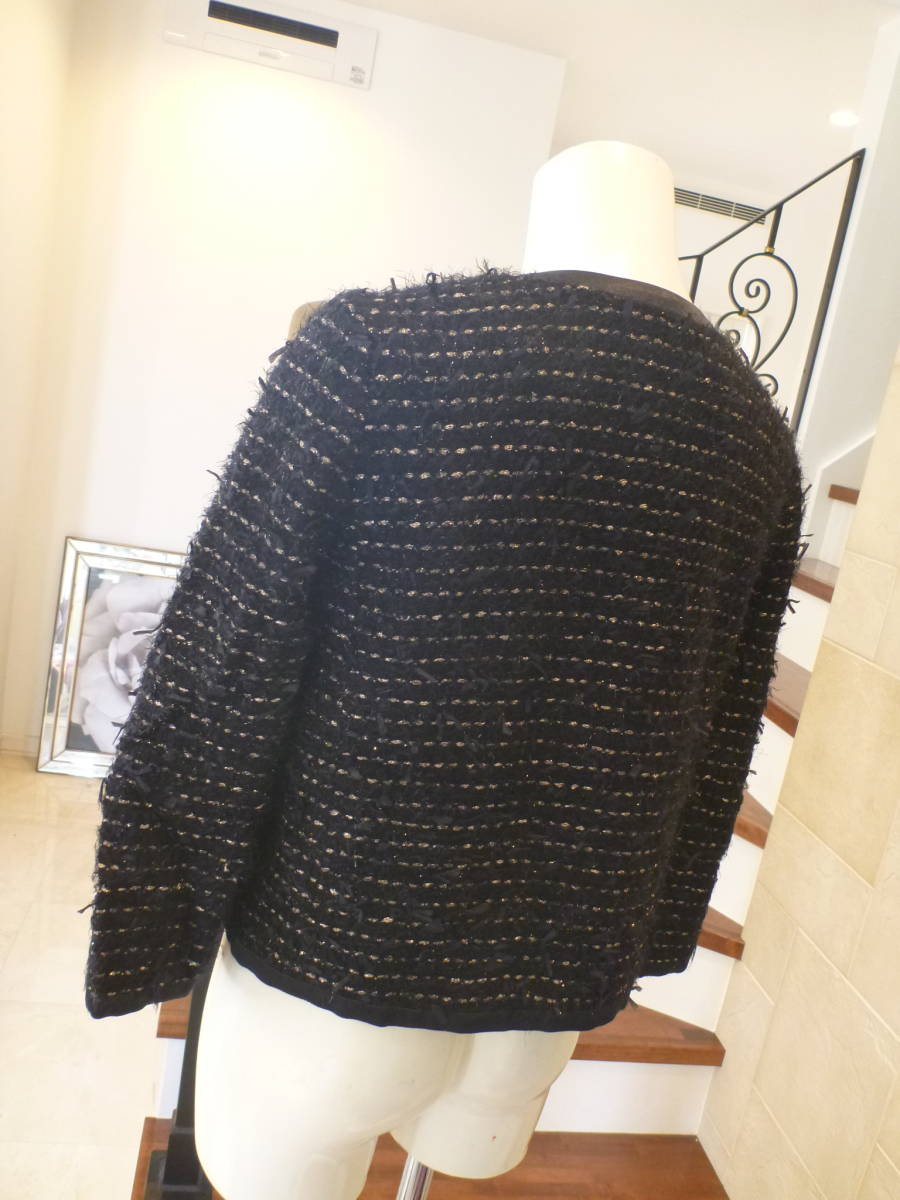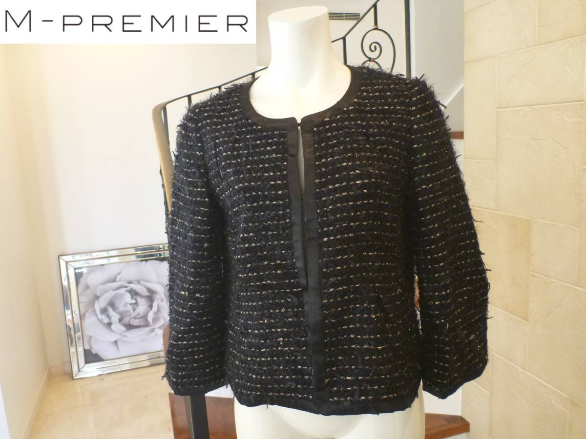 3万 超美品 M Premier couture  Mプルミエ  エムプルミエ クチュール★ 黒ブラック系 ツイード ノーカラー ジャケット 36 S相当