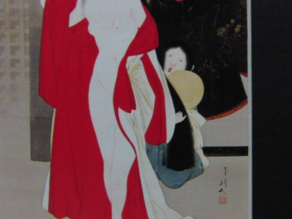 渡辺省亭、塩谷高貞妻浴後図、希少画集より、新品額装付、送料込み、iafa