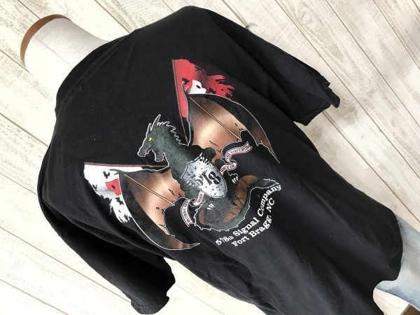 【バックプリント】Hanes ヘインズ 578th Signal Company Fort Bragg NC Tシャツ L 黒