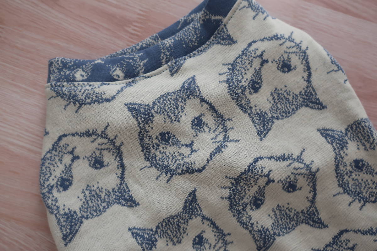 家庭用ミシンで作っているため、ニットの毛羽立ちがあります。