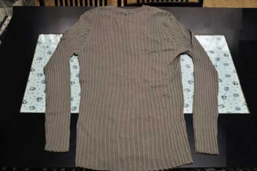 シルエットはすっきりシャープな印象で着こなせるスリムフィットですが、横方向に伸縮性がありラクに着られるリブ構造で編み込まれているので、動きやすく且つおしゃれ感ある細身ラインで魅せてくれるニットです。