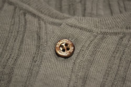 胸元ボタンのヘンリーネックスタイルがポイントになっていて、ボタンを閉じインテリ風に着こなせたり、ボタンを外し首元にあか抜け感をつくって武骨な着こなし方もできるアイテムです。
