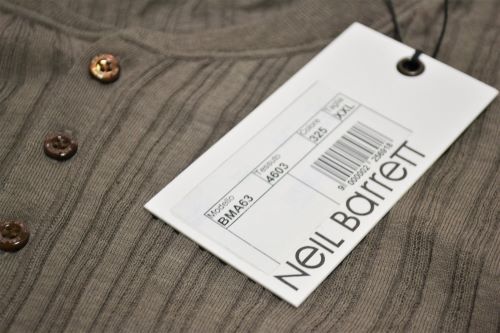 NEIL BARRETT ニールバレット スリムフィット ヘンリーネック リブ編み 長袖ニット【グレー系/表記サイズXXL】です。