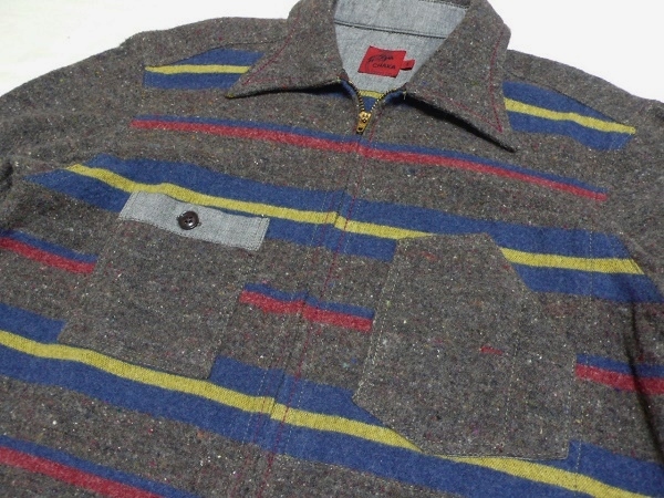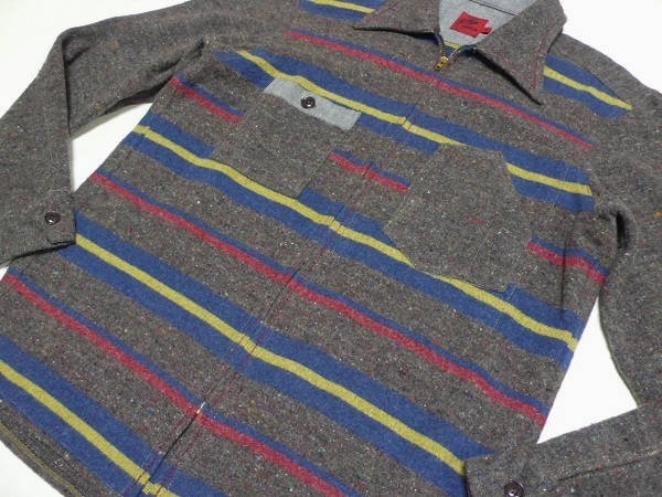 美品ThirdSix[CHAKA]ウールボーダーフロントジップシャツ4(M)ミックスグレー | |||