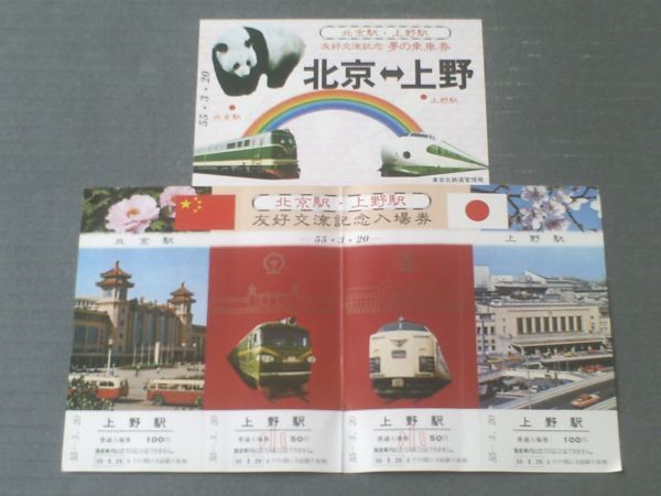 【北京駅・上野駅 友好交流記念・夢の乗車券(昭和55年3月20日)】東京北鉄道管理局 | |