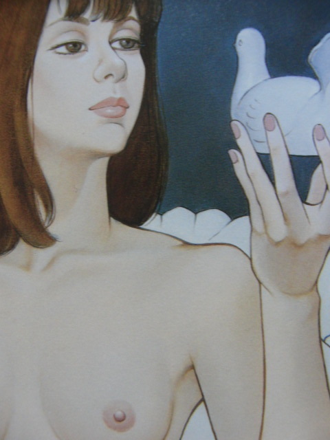 奥津 国道 【鳩よ】 希少画集画、状態良好、新品高級額装付、送料無料、洋画 油彩 人物、zero