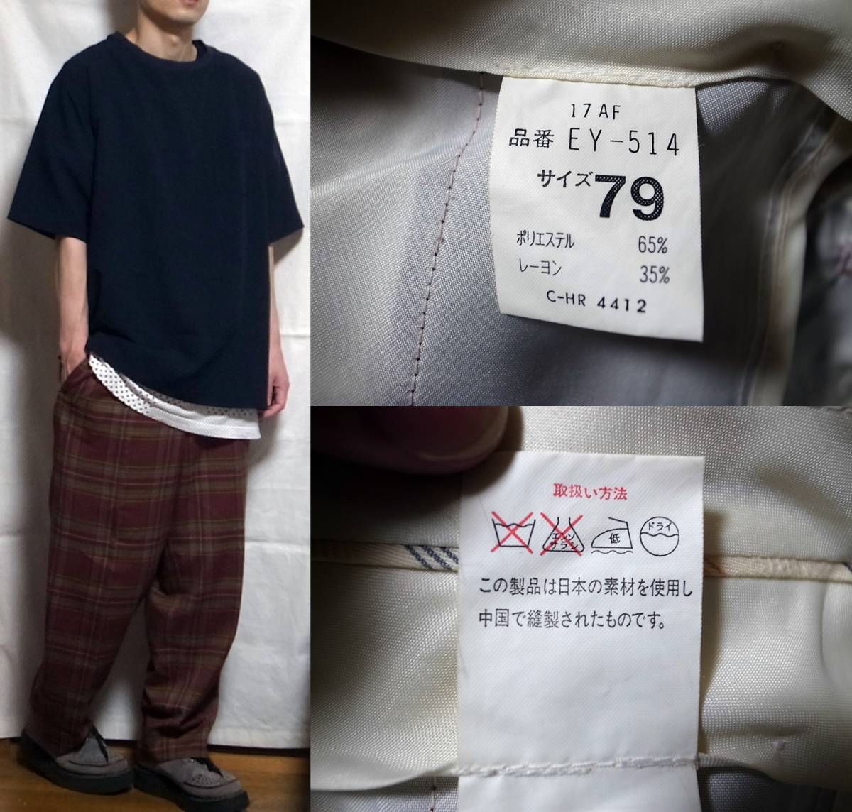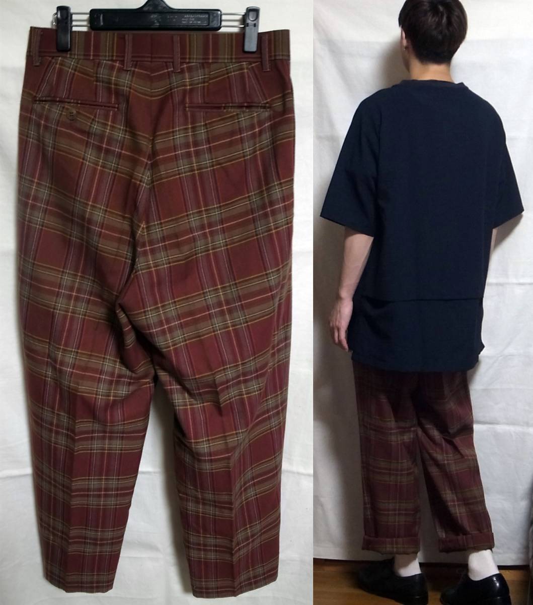 ご回覧ありがとうございます。お手数ではございますがトラブルの元になりますので、説明文は最後までお読み下さい。 着画がある場合のモデルは177×62位の男性です。 こちらはused clothingのワイドチェックスラックスです。サイズ表記は79です。実寸も明記しておりますので参考にして下さい。 カラーリング、シルエット共にとっても素敵です。着画のようにくるぶし丈にロールアップしてみても良い感じだと思います。used clothingなので周りと被りたくないという服好きの方にお勧めです。 状態はused clothingですが特別なダメージや汚れは見受けられません。普段からコーディネートに古着も合わす方なら問題無いかと思います。 あくまでも取扱い商品は古着となりますので神経質な方はご遠慮下さいませ。 サイズ表記 79 実寸平置き(ウエスト幅39㎝位、股下71㎝位、股上32㎝位、もも幅29.5㎝位(股下線から)、裾幅22㎝位、幅×2でおおよそ円周となります。) ※着画モデルは177×62位の男性です。 ※特殊なアイテムの素人採寸ですので多少の誤差はご了承の上ご参加ください。 |