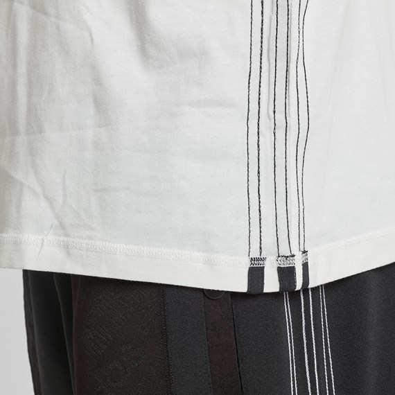 裏地を表にひっくり返した独特の仕上がりのスリーストライプスが反骨精神を覗かせる。胸には反転したブランディングを配している