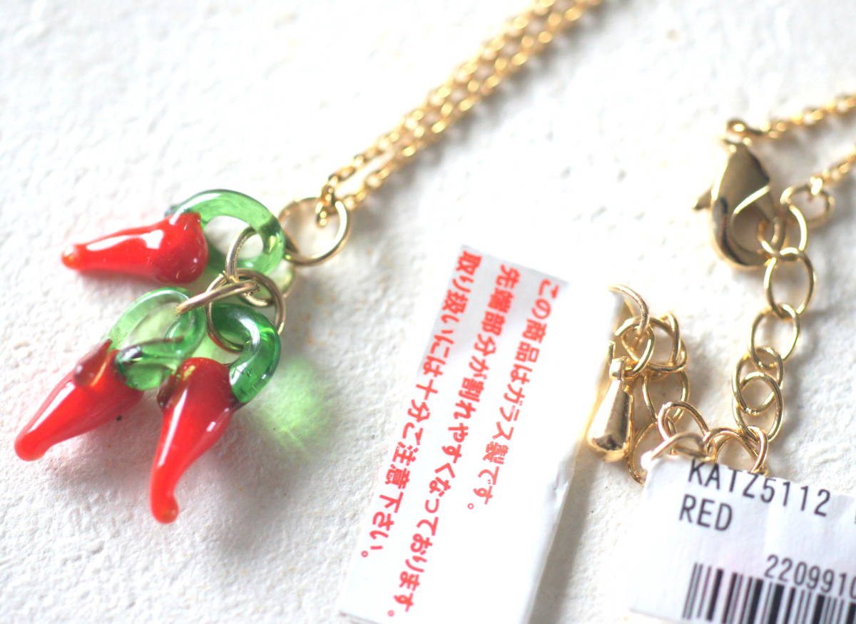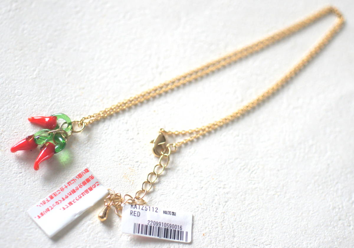 新品未使用 ガラス製の唐辛子付きネックレス チリペッパー 赤 韓国製