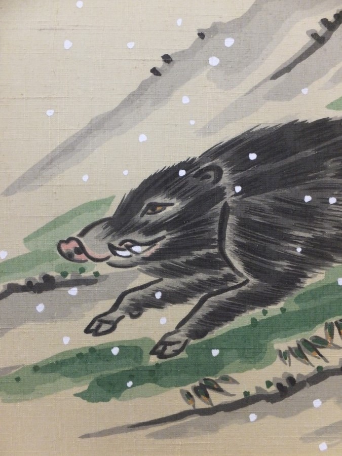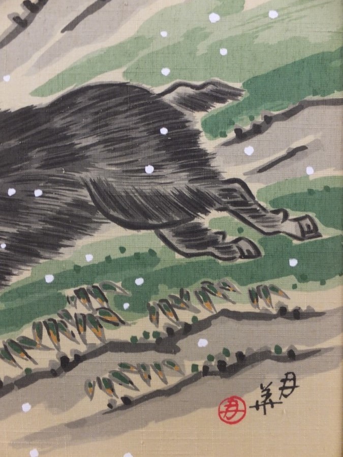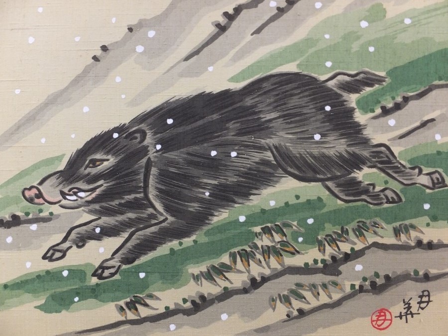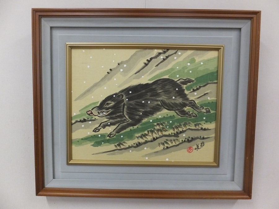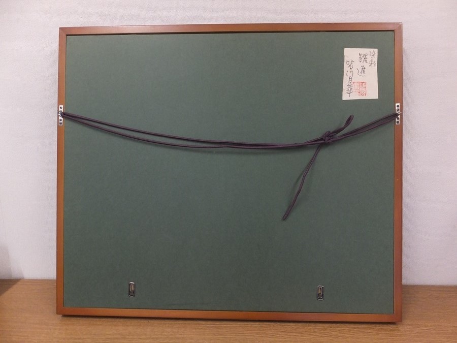 | 説明 | 京都出身 染色家 皆川月華の『染彩躍進』染彩 額です。 モチーフは干支『亥』です。 状態は良好です。 額は比較的良好ですが、小アタリ等あります、 しかし、このままで掛けて楽しめると思います。 撮影は前面アクリルを取り外して行っています、画像で御確認下さい。 ★九州地方の買出し品です。 買出したままでの出品です、御入札宜しくお願い致します。 入札は早めにお願い致します。 一人でも入札があれば梱包作業に入りますので、素早い発送が可能です。 早期終了あり。 皆川月華は、(1892-1987) 昭和時代の染色家。 明治25年6月4日生まれ。 京都出身。 本名は秀一。 安田翠仙に友禅の染色, 都路華香に日本画をまなぶ。 昭和2年帝展初入選,7年特選。 36年「濤」で芸術院賞。 友禅に絵画的手法を応用した染彩で知られる染色工芸の草分け。 58年京都府文化特別功労者。 昭和62年5月11日死去 94歳。 |