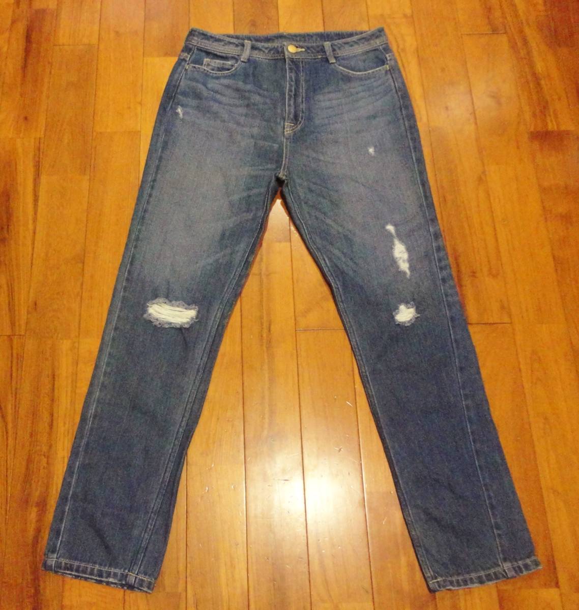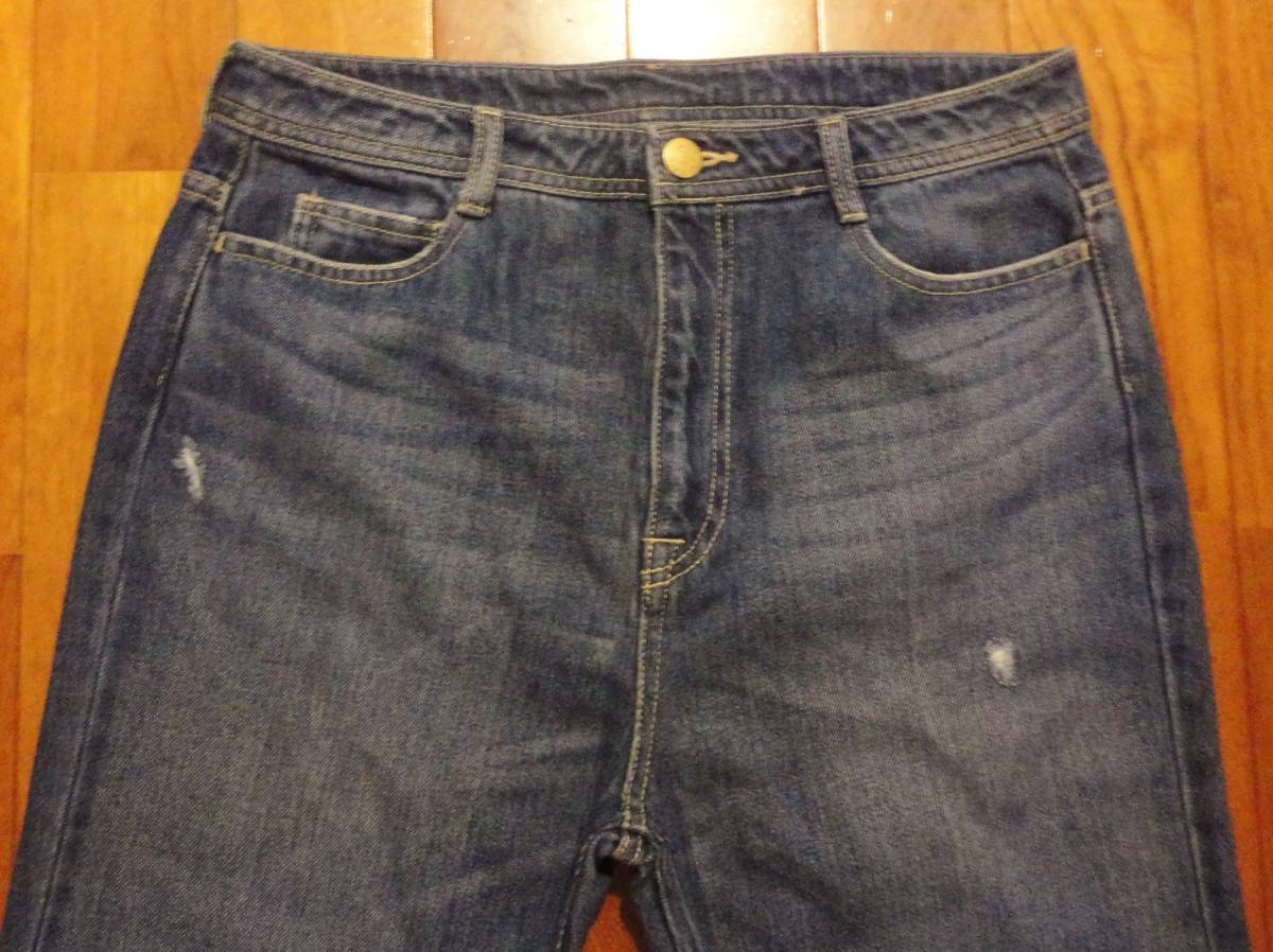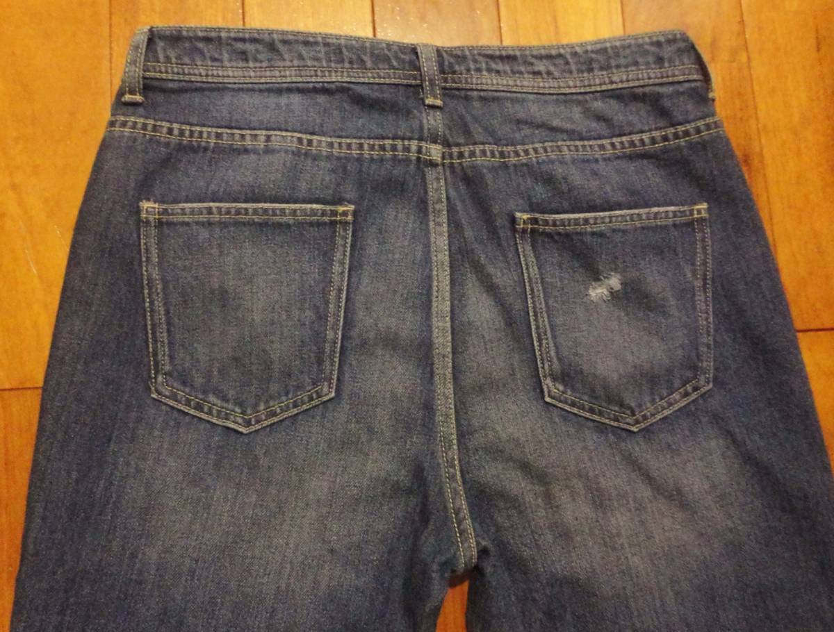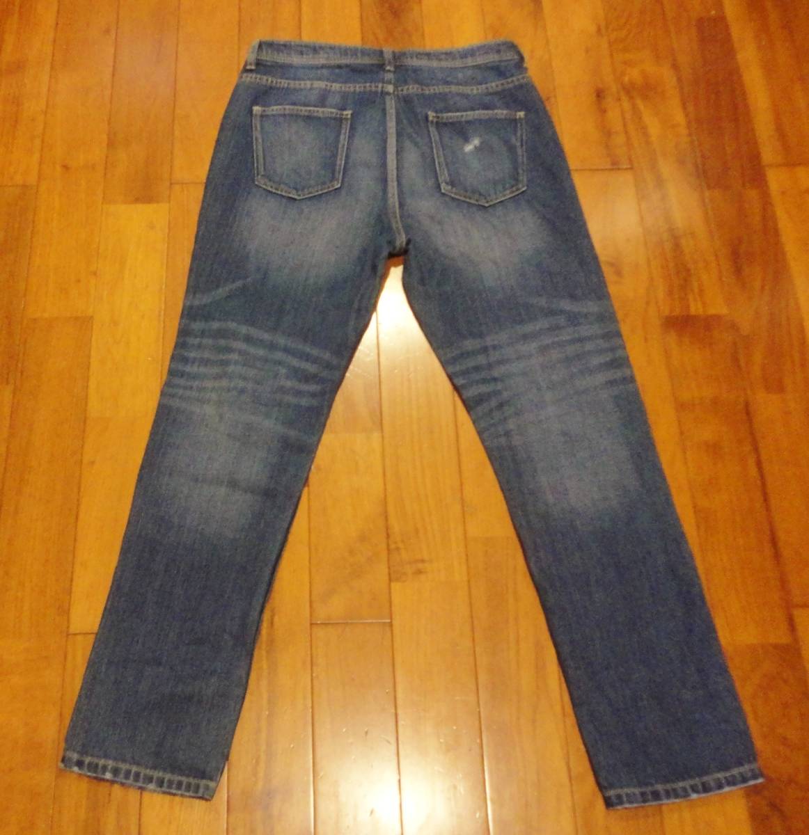 フェリシモ ヌージージーンズのUSED加工デニム、CS-673-194-33です。色はインディゴブルーです。USEDですが状態は良いです(10段階中8程度)。生地は綿100%です。ジッパーフライです。正規品です((株)フェリシモ、中国製)。サイズは6(W73 H97)ウエストは重ねずに平置きで約77cm、ヒップ約100cm、股上約32cm、股下約74cm、股下15cmのふともも部分約50cm、裾まわり約35cm、重量約510gです。発送はゆうパケットポストになります。