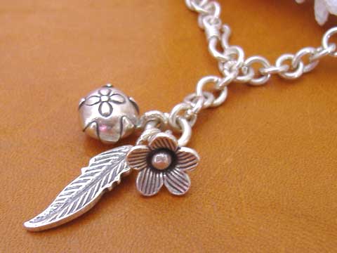 | ★カレン族シルバー チェーンブレスレット2★花・葉・フラワービーズ |