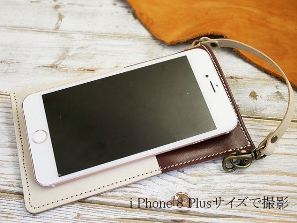 送料無料 ペタンコで多機種対応!!カードが入るレザースマホポーチ lmc03 手染めDブラウン