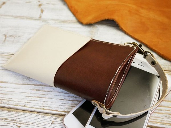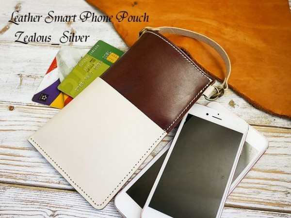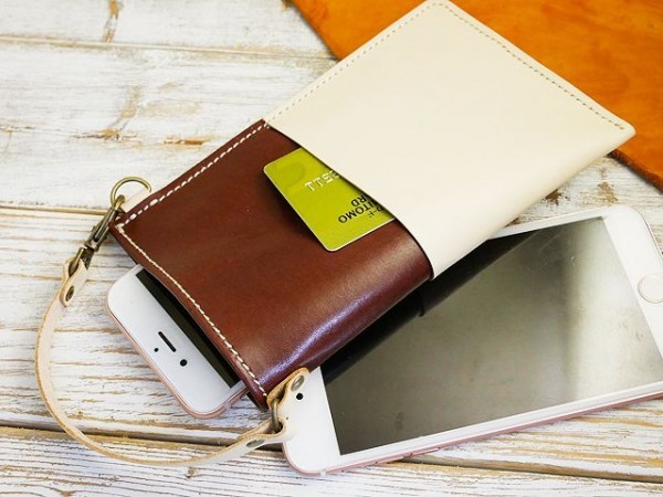 ペタンコ薄型!!カードも入る多機種対応レザースマホポーチ