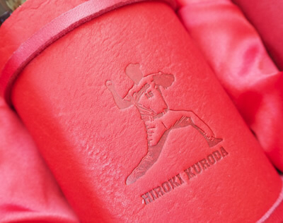 ラベルは、黒田投手愛用のグラブを製造している株式会社エスエスケイのグラブ革を使用し、黒田投手の投球フォームを1つ1つ刻印した特注品です。