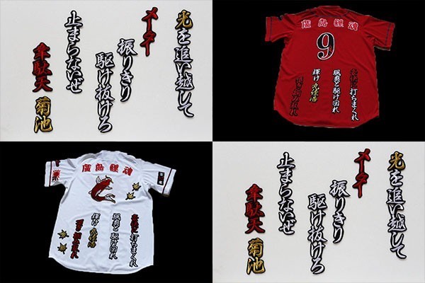 送料無料 丸 応援歌 刺繍 ワッペン 行白赤金/黒 / 広島 カープ 応援 ユニホーム に