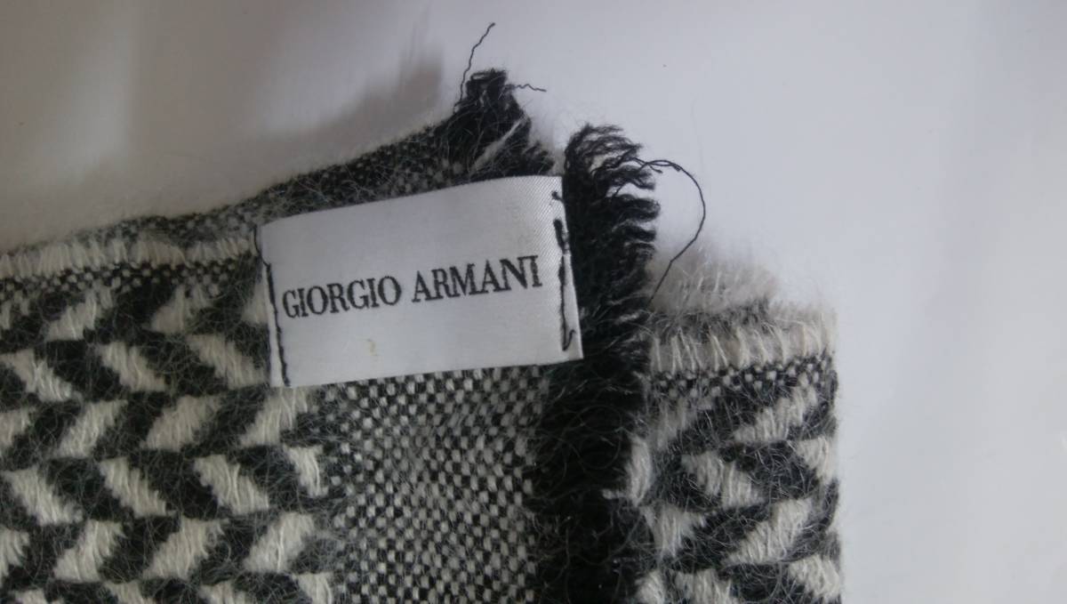美品 GIORGIO ARMANI ジョルジオ アルマーニ  マフラー ショール ストール ホワイト×ブラック
